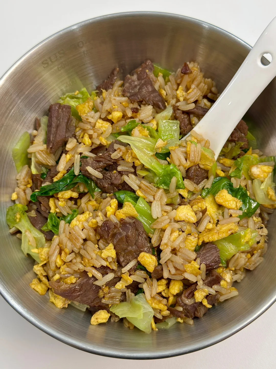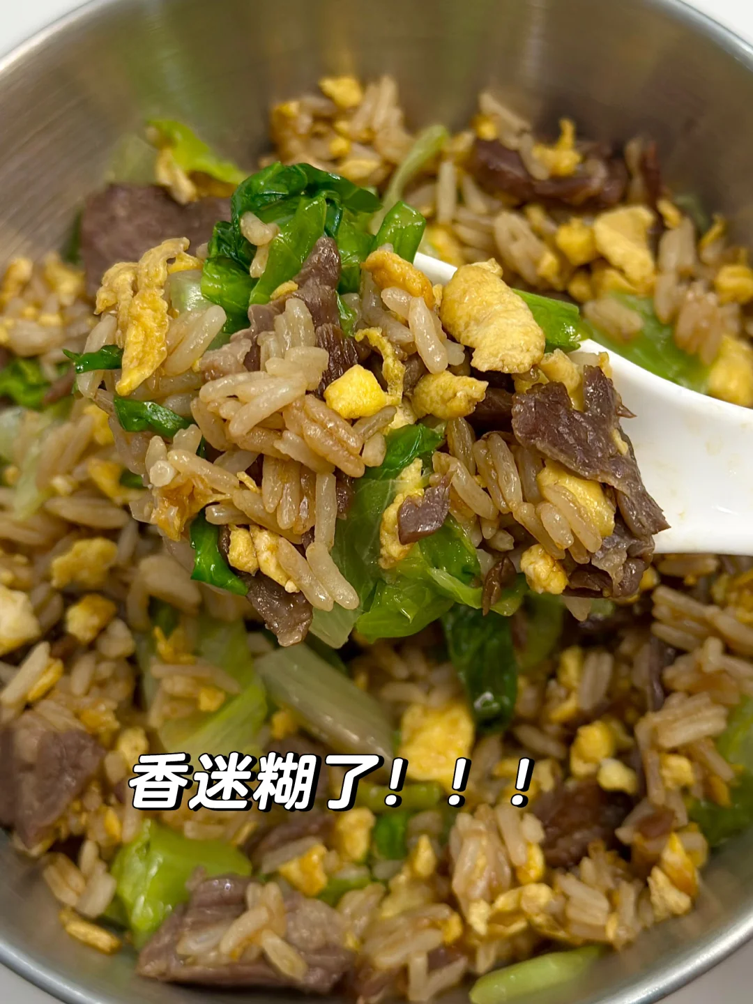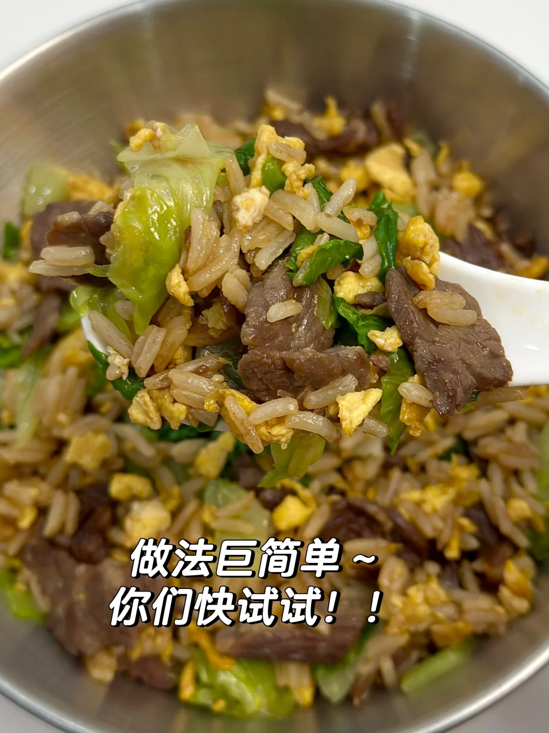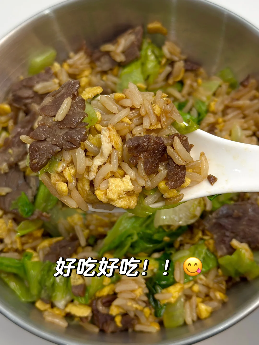 分享一个巨好吃的牛肉鸡蛋生菜炒饭!!家常简单又好吃!口感很丰富!真的绝了!吃完巨饱腹!姐妹们快去试试! [害羞R]做法如图!姐妹们赶紧安排起来呀!!