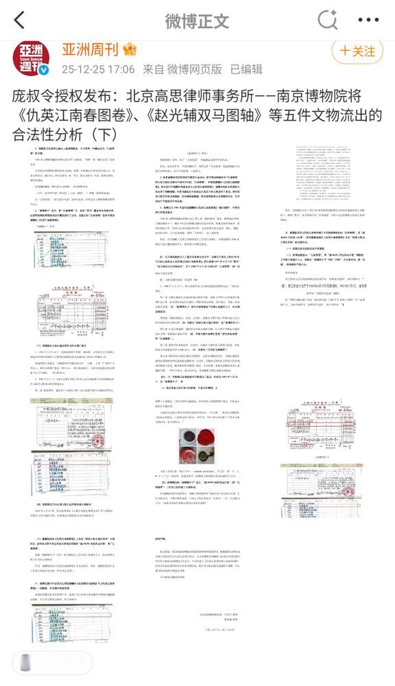 徐老院长被请去“喝茶”,还没来得及装糊涂,庞叔令这边已经甩出了能让徐湖平清醒的“答案”。 ​ 这事越看越有意思了。名字换来换去,画还是那幅画,印章还是庞家的印章。 ​ 查了查背景,这幅《仇英江南春图卷》来头不小。是庞家捐赠给国家的珍贵文物。怎么就从南京博物院流到了拍卖会?南博当初说划拨时叫“江南春卷”,卖出去时发票写“仿仇英山水卷”,拍卖会又变回原名。名字变戏法一样,里头没点门道谁信? ​ 庞家后人这次较真了。直接授权律师发分析,摆事实讲道理。捐赠记录、划拨名称、拍卖信息,全对得上。更关键的是,画上盖着庞虚斋的收藏印。这就像自家的祖传宝贝,刻着姓呢,走到哪儿都认得。 ​ 还有个细节值得琢磨。陆家夫人的硕士论文提到,90年代艺兰斋就有了《仇英江南春卷图》。这和南博说的流出时间对不上。时间线这么乱,里面水恐怕不浅。 ​ 文物捐赠本是义举,体现的是对国家的信任。如果捐出去的东西,最后莫名其妙出现在市场,谁还敢捐?这不仅伤了好人的心,更动了文保事业的根基。 ​ 事情发展到这一步,已经不是简单的名称纠错了。它关系着捐赠文物的流向安全,关系着公立机构的公信力。公众需要的是一个清清楚楚的交代,而不是云里雾里的名称游戏。 ​ 希望这次“喝茶”,能真正喝出个明白。把流程捋清楚,把责任搞分明。该追回的追回,该完善的制度抓紧完善。这才是对历史负责,对捐赠人负责,也是对全体国民的交代。 ​ 文物保护,容不得半点糊涂账。阳光之下,一切都该清清楚楚。 ​ MCN双量进阶计划