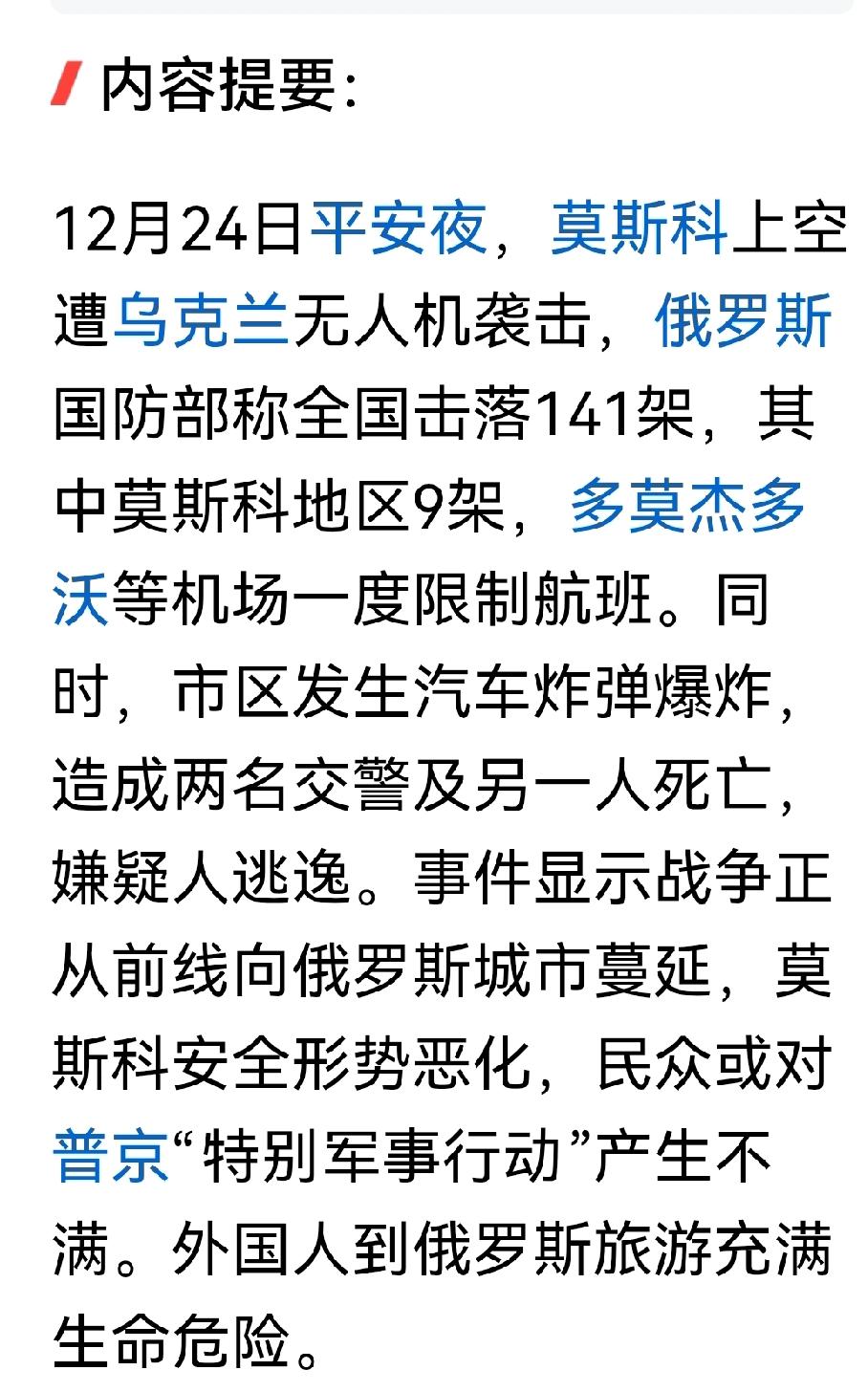 平安夜不平安,圣诞节照打不误! 俄罗斯袭击乌克兰敖德萨等地,乌克兰对俄罗斯莫斯科照打不误。 普京应该明白,这场战争他己经无法取胜…