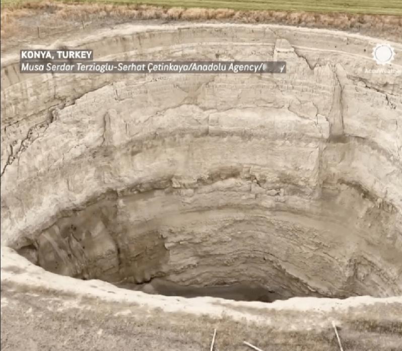 被誉为土耳其“粮仓”的中部科尼亚平原(Konya),正遭遇一场前所未有的地质灾难。受极端气候干旱和人为过度抽取地下水影响,当地近年涌现大量巨大天坑,总数近700个。这些直径可达30米、深度达数十米的巨大坑洞,正加速吞噬珍贵的农耕地,严重威胁当地农业生产、生态环境和居民安全。 据土耳其灾害与应急管理局(AFAD)最新数据,目前土耳其全国已记录到684个天坑,其中534个集中在科尼亚省。科尼亚省及其周边地区是土耳其最重要的农业核心地带,占全国可耕面积约11%。如今,这片肥沃土地布满骇人深坑,部分农地短距离内就出现十多个大小不一的塌陷点。