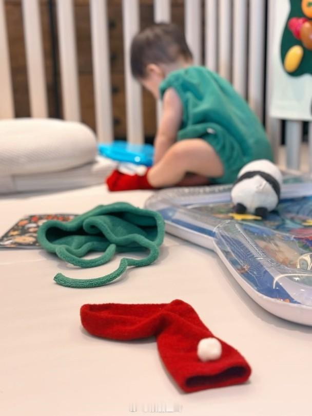 【On.cc】黃翠如同阿仔過首個聖誕節 激可愛聖誕樹BB登場今年是藝人蕭正楠(Edwin)與黃翠如的囝囝「蕭哈哈」第一個聖誕節,而身為父母的兩人當然興奮。翠如與Edwin昨晚(24日)於社交網大晒一家3口聖誕親子照,相中見「蕭哈哈」換上聖誕樹BB裝,眼仔睩睩,超級可愛,翠如留言:「平安夜,添加了一棵小樹,只是小樹不太合作,變成期間限定半小時,祝快樂」。原來溫馨背後,充滿挑戰,翠如「直擊」拍攝後半小時的現場,於短片中笑說:「襪仔甩咗,帽仔除咗,個屁股仔走咗」。不少網友大讚BB趣致:「好得意」、「好似翠如」。「蕭哈哈」遺傳晒黃翠如同蕭正楠優良基因。不過個聖誕樹BB裝轉頭就甩晒。襪都冇埋。黄翠如萧正楠