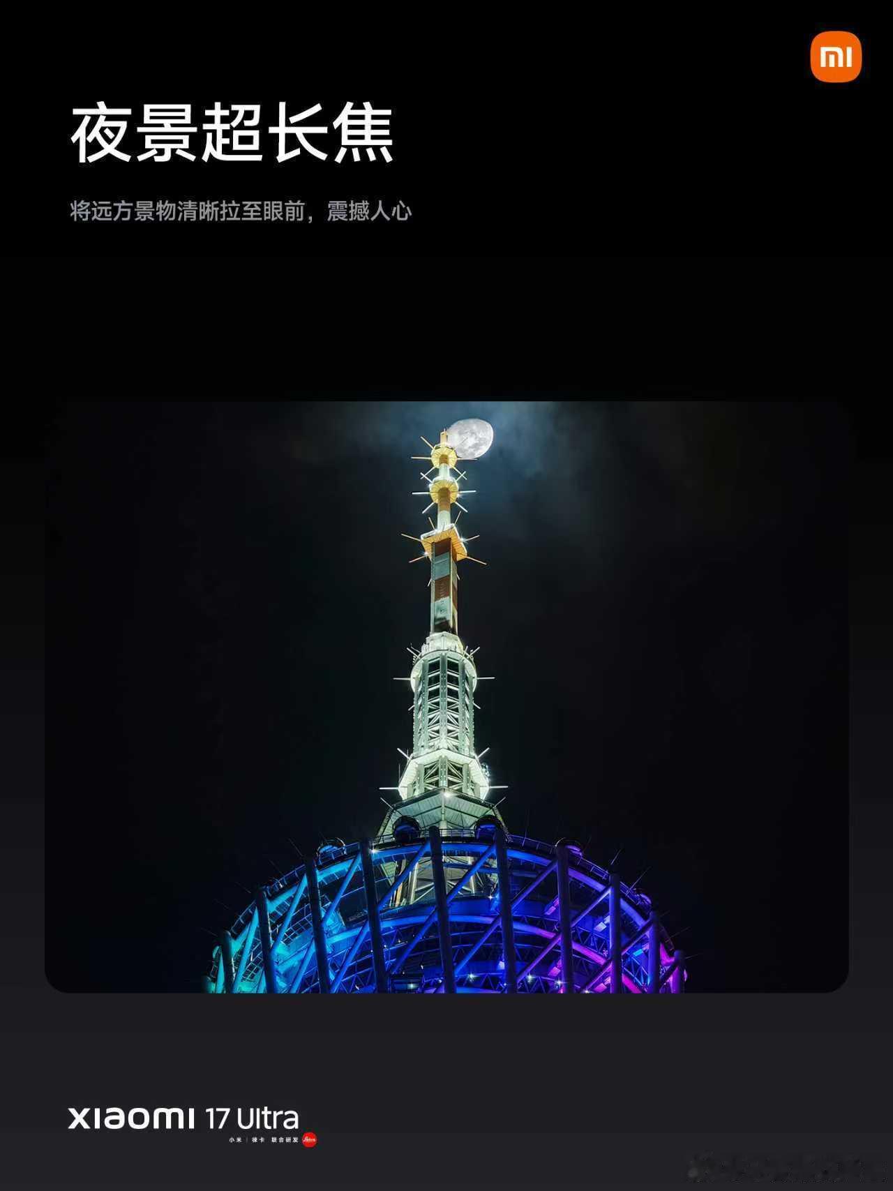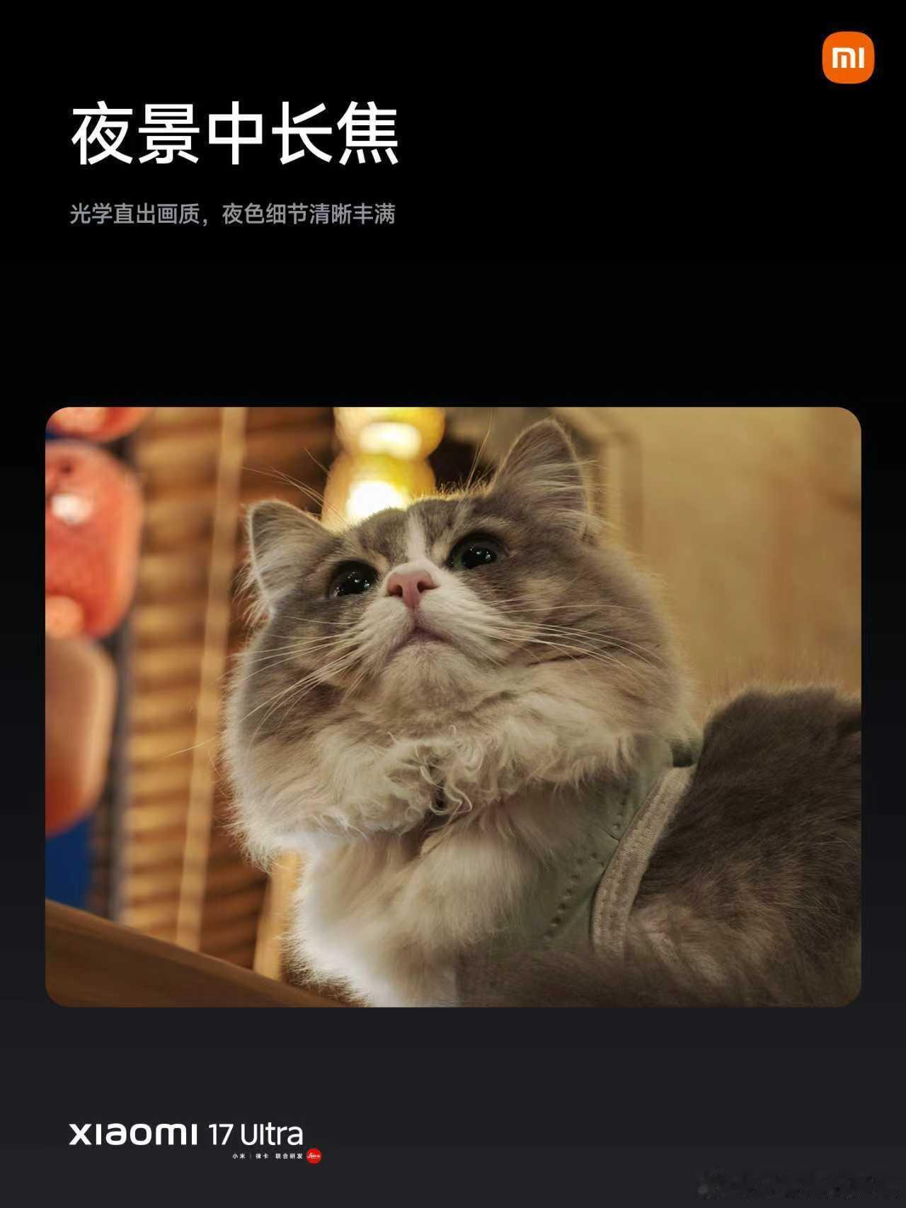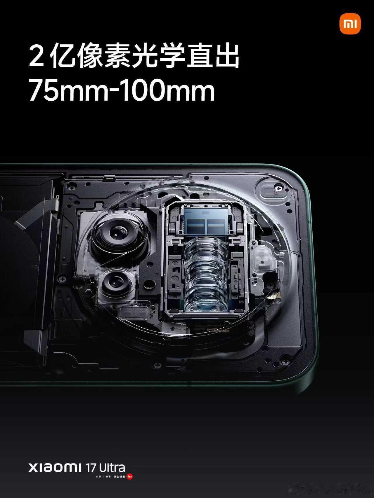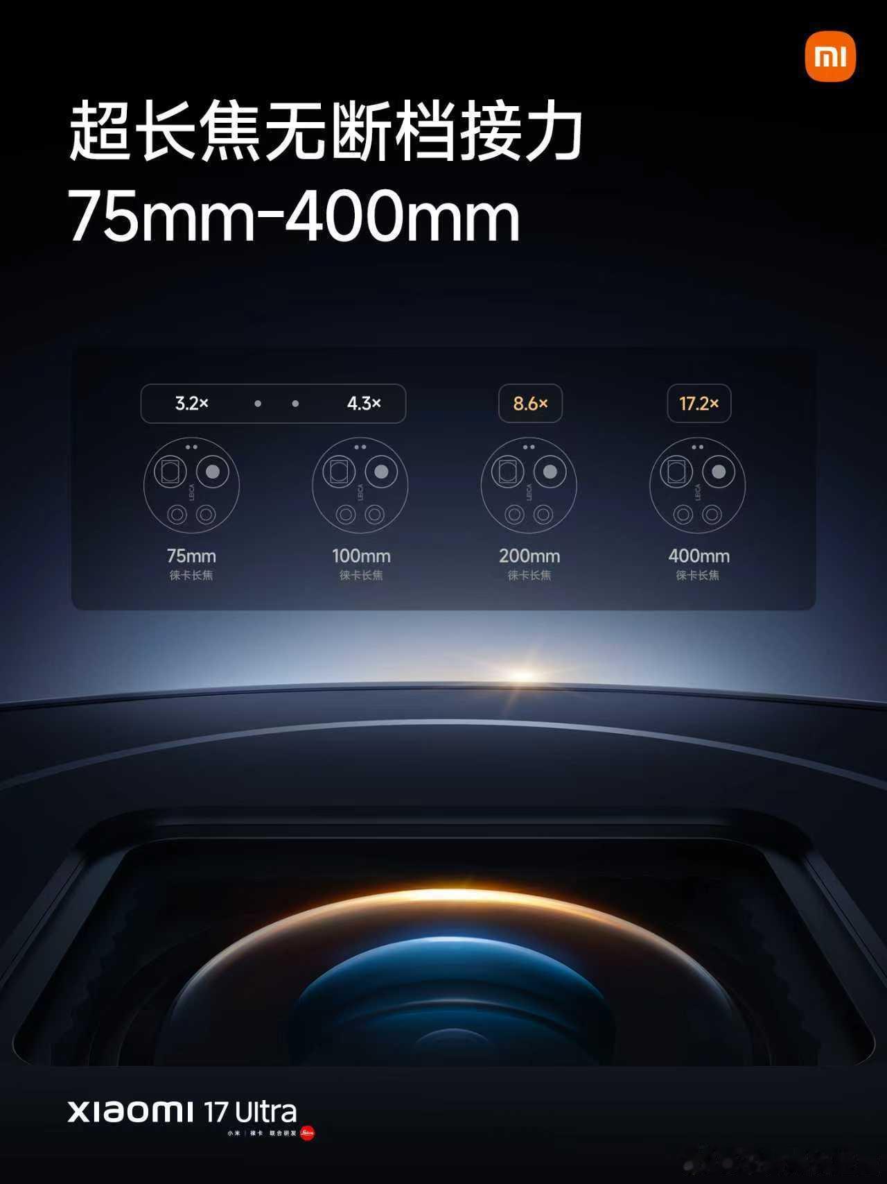 小米17Ultra 搭载徕卡2亿像素光学变焦。1/1.4″超大底传感器,搭配3G+5P长焦光学架构,实现连续光学变焦,全程画质清晰,无裁切损失。75mm-100mm焦段,中长焦全大底,真光学直出,200mm和400mm焦段,超长焦接力,远望也清晰。经典人像焦段全覆盖,夜景拍人,张张鲜活真实。从此,开启移动影像光学变焦时代。小米17Ultra今日发布