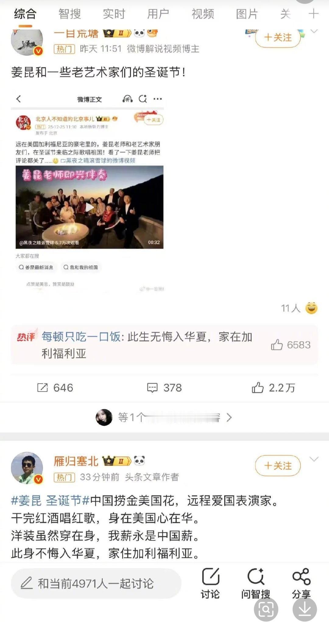 姜昆方面的辟谣来了,感觉哪有些不对。 12月26日,姜昆相关争议发酵,有个自称是媒体人的记者,说联系了姜昆助理,对方辟谣了姜昆在美国的事。 但谓的“恶意造谣”,真的是无中生有吗? 视频是怎么来的,声音是怎么来的,姜昆老师女儿是不是在美国,这些都没提。 目前的辟谣声明含糊其辞,根本没有拿出能让人信服的实锤证据。 这样的“辟谣”更像是欲盖弥彰。群众的眼睛是雪亮的,不是一句“虚假内容”就能糊弄过去的! 虽说《虎口遐想》《如此照相》曾是经典,但近些年他的作品脱离群众、跟不上时代审美也是事实。 号称古稀之年跑公益演出、提携后辈,可实际曝光的更多是直播露脸。 一个连评论区都不敢打开的艺术家,怎么能让大家看清楚真面目呢?