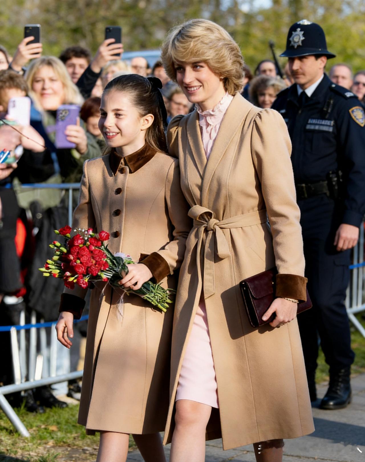 夏洛特小公主今年圣诞礼拜中的大衣和她母亲的礼帽一样,但同时也再一次撞款了她祖母黛安娜王妃的圣诞造型。不知道是不是再向她祖母致敬,不过不管怎么样,小公主长得越来越大方啦。如果黛安娜王妃还在一定会非常喜欢这个孙女,两个人有共同的爱好,长得还有点相似,弥补了没有闺女的遗憾。但是只能是如果啦,不过很喜欢她们祖孙两人的风格