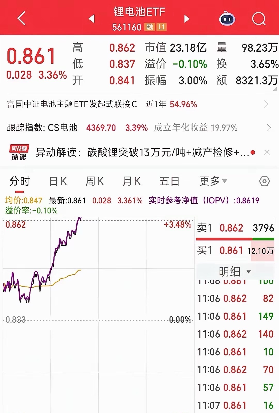 今天A股受期货影响很大,碳酸锂隔夜大涨昨晚碳酸锂直接爆发了,一吨涨了4300元,主要是以下几个原因1.宜春27个过期矿权拟注销,市场认为读为监管收紧,预期碳酸锂会出现短缺2.12月碳酸锂产量环比仅增约3%,远低于需求增速 ,减产是关键碳酸锂的涨价直接催动锂电池板块上涨,目前锂电池ETF已经涨了3.48%,趋势上面还在上涨。锂电池板块带动了光伏板块的上涨,短期看这波碳酸锂的涨价会催生整个整个新能源行业的回暖,这是资本市场愿意看到的,而且随着时间的发酵,这种情绪会带动A股指数的上涨。