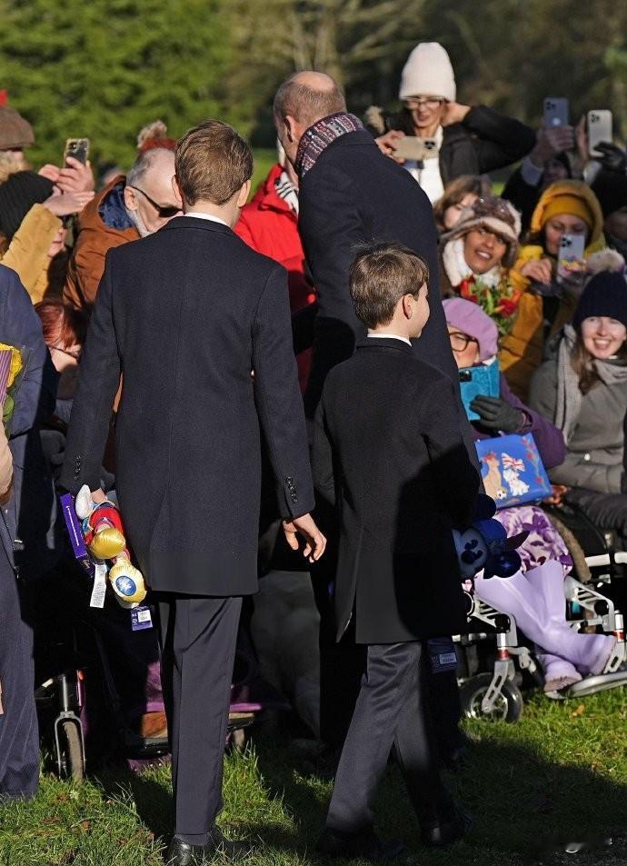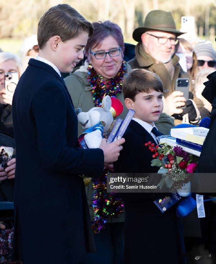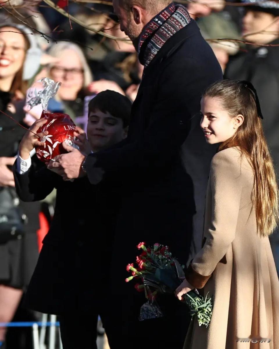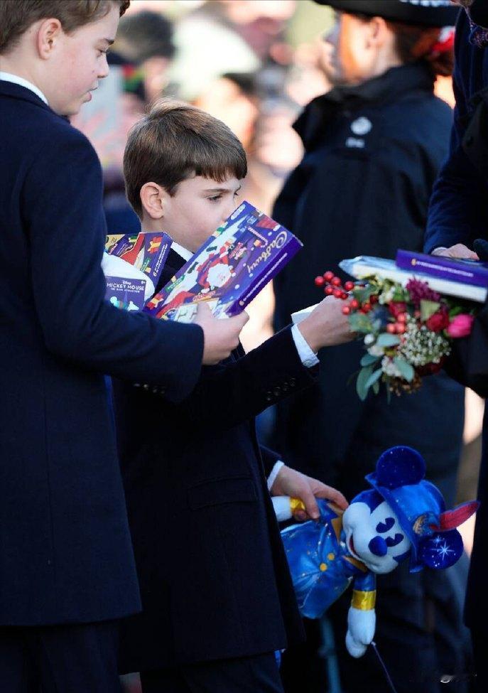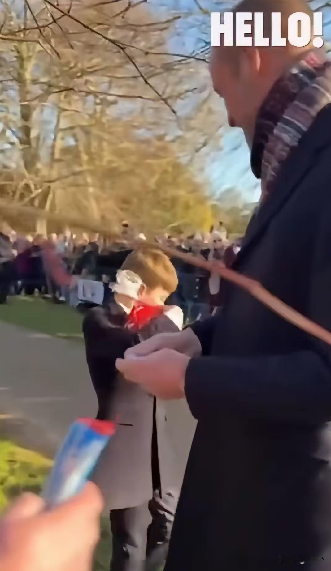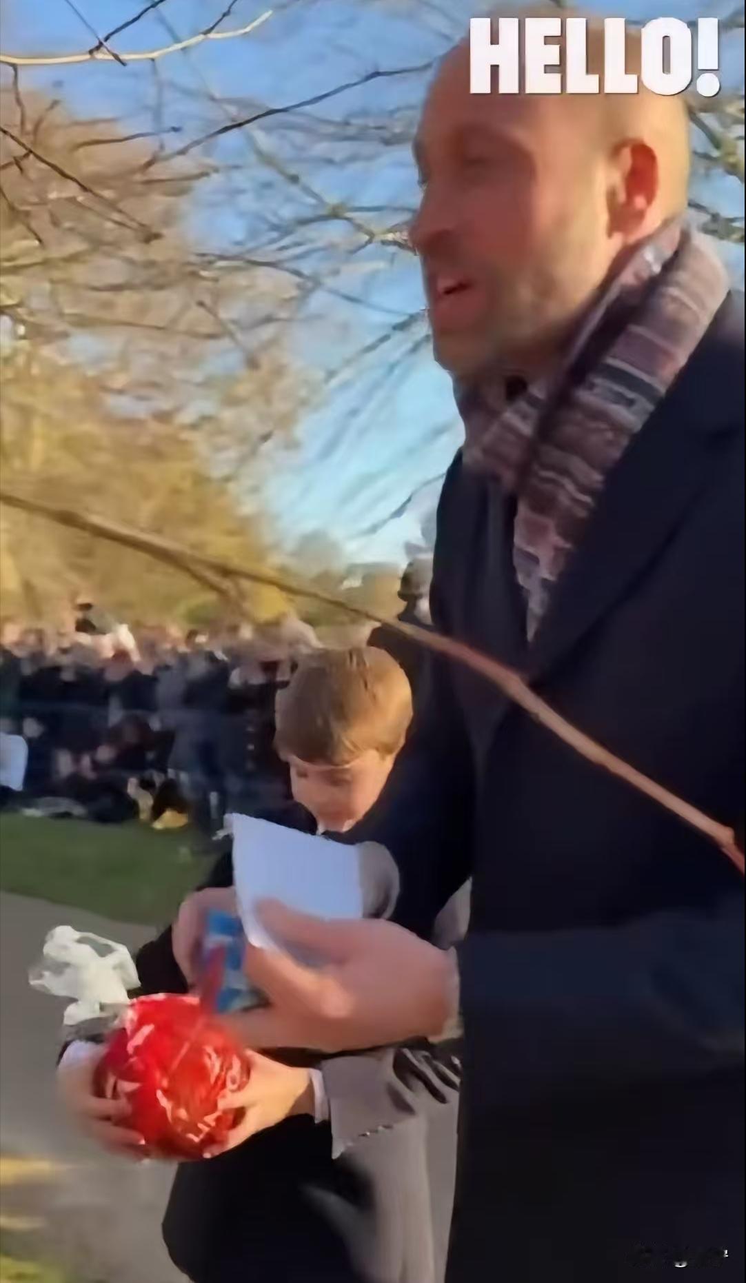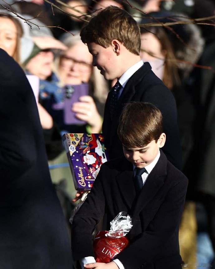 路易小王子已经7岁了,但是依旧还是个鬼马的小吃货啊! 12月25日,威廉王储和凯特王妃带着威尔士三宝一起前往教堂参加圣诞礼拜。 徒步前往教堂,沿路都是热情的民众,威廉凯特带着乔治王子、夏洛特公主、路易小王子一起和民众们亲切互动。 威尔士三宝更是收获颇丰,收到了很多的圣诞礼物和糖果。 作为一个已经43岁的老父亲,威廉王储这次也收到了一颗大大的瑞士巧克力球,不过在威廉还在刚惊喜的接过糖果,还没将糖果捂热,身边调皮的小儿子路易就伸手“抢走了”。 可爱的路易不仅从爸爸手中“劫走”糖果,还转身将糖果抱在怀中护着,小模样逗得周围的民众哈哈大笑。 鬼马小路易即便长大了,身高猛长,但是鬼马属性和吃货属性还是没变,威廉望着小儿子也是一脸无奈和宠溺!