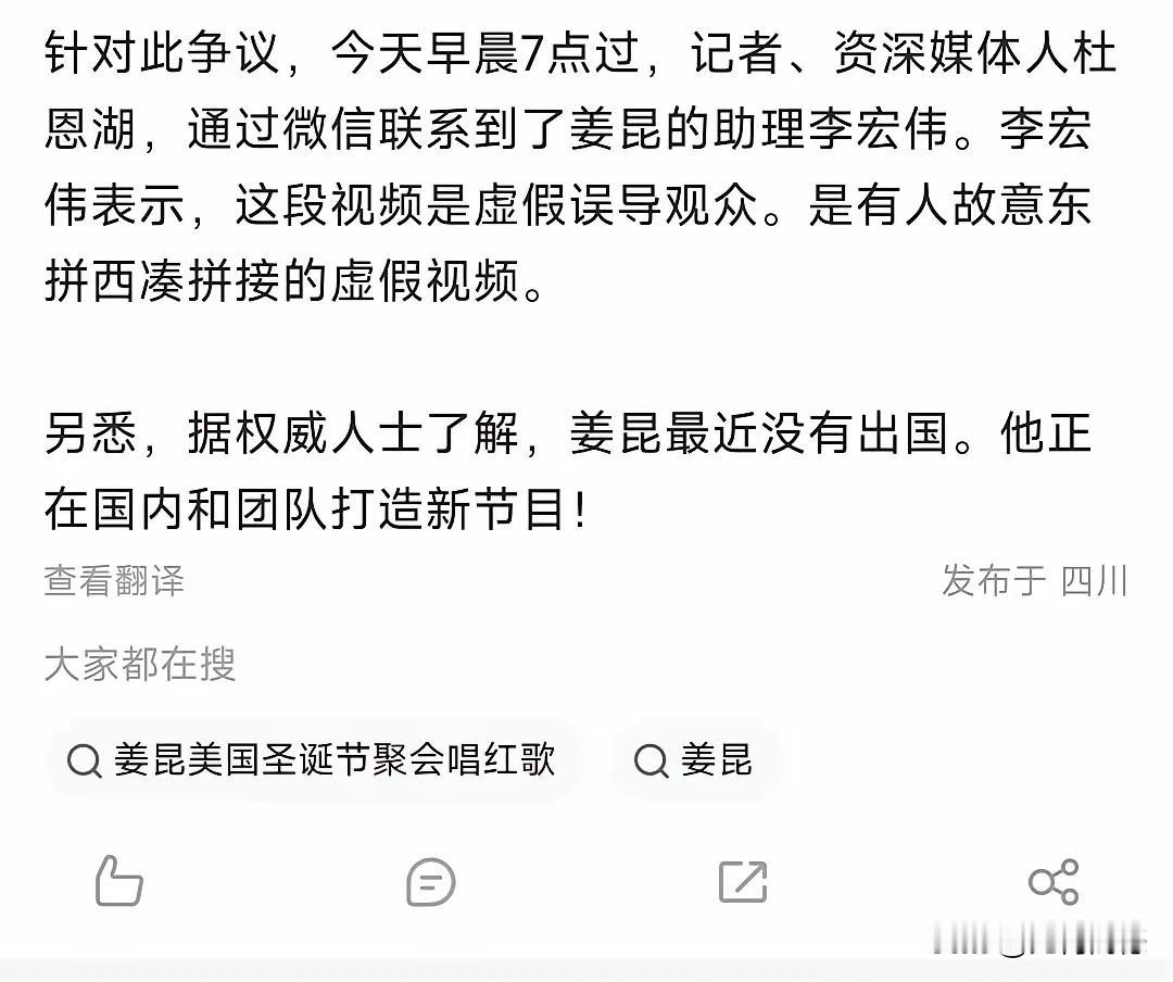 姜昆老师唱歌的这个事,其实也没有什么,也不用过多的做出解释说明,随着时间的推移,慢慢的就会过去了。令人遗憾的是,经过这个姓杜的人这么一解释,反倒不如不解释了,因为这个人的报道风格,不适合来报道像姜昆老师这样德高望重的艺术家!