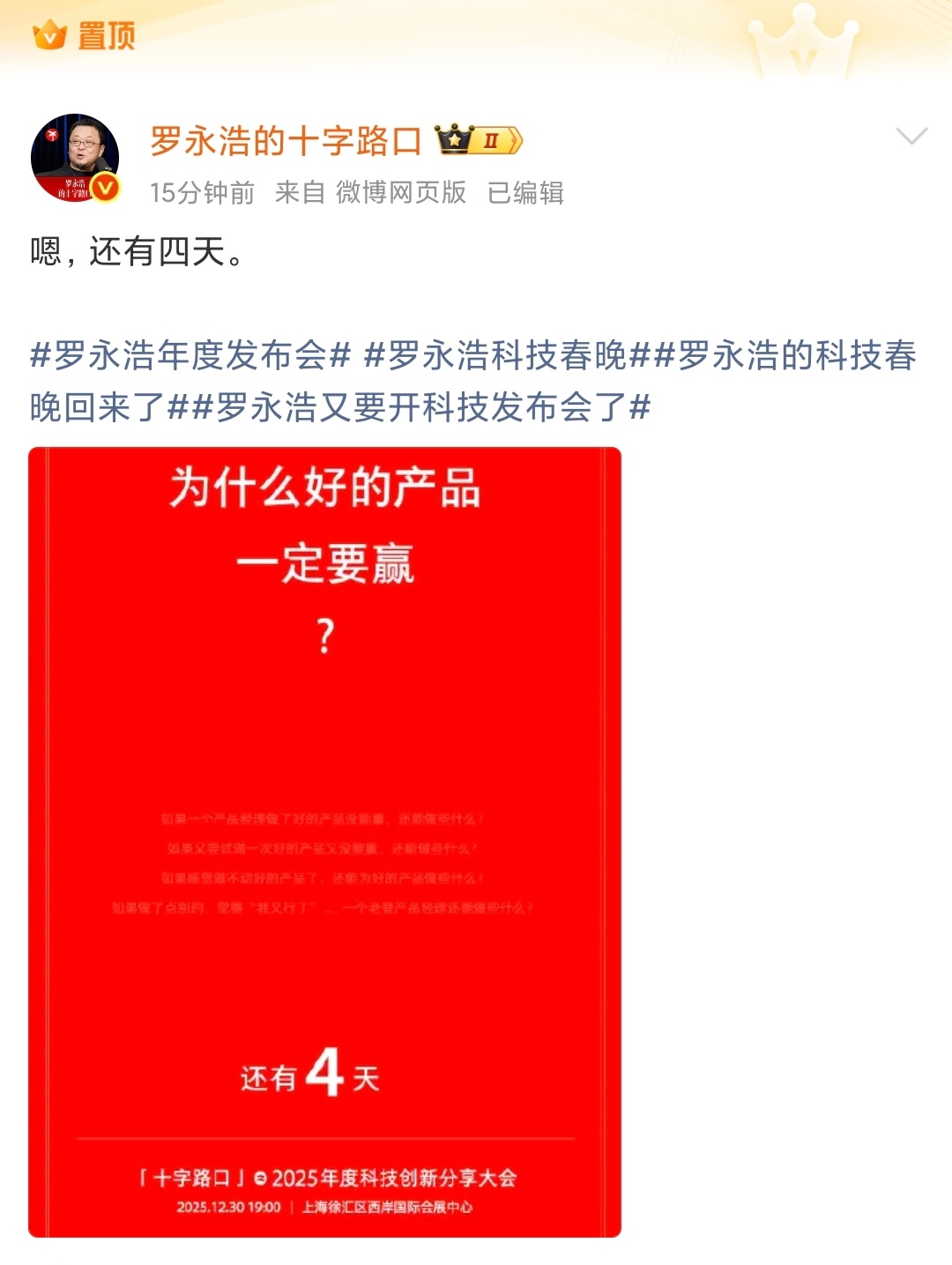 罗永浩提前剧透科技春晚猛料论WB营销,罗永浩说第一,恐怕只有一个人表示不服