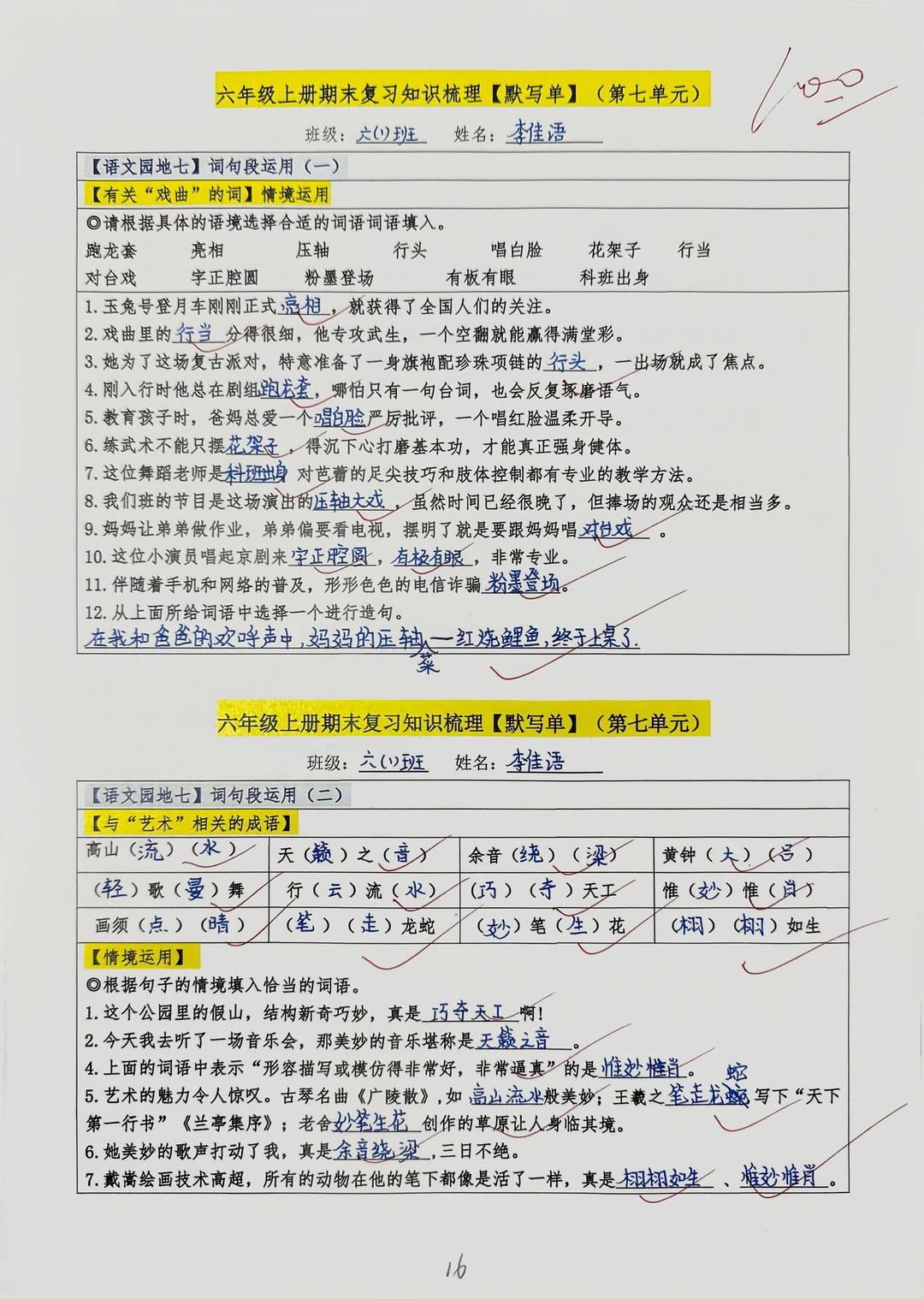 六上语文园地七【词句段运用】专项练习