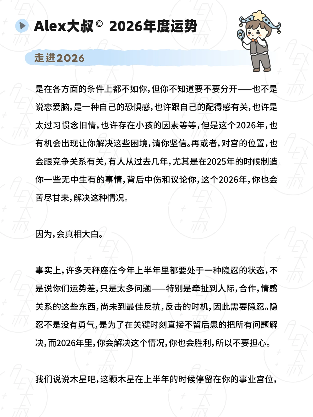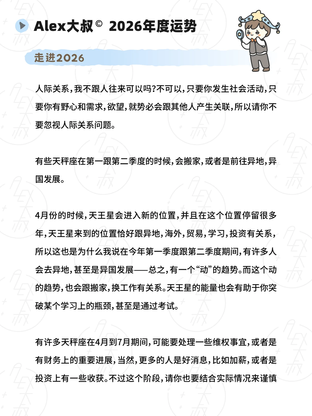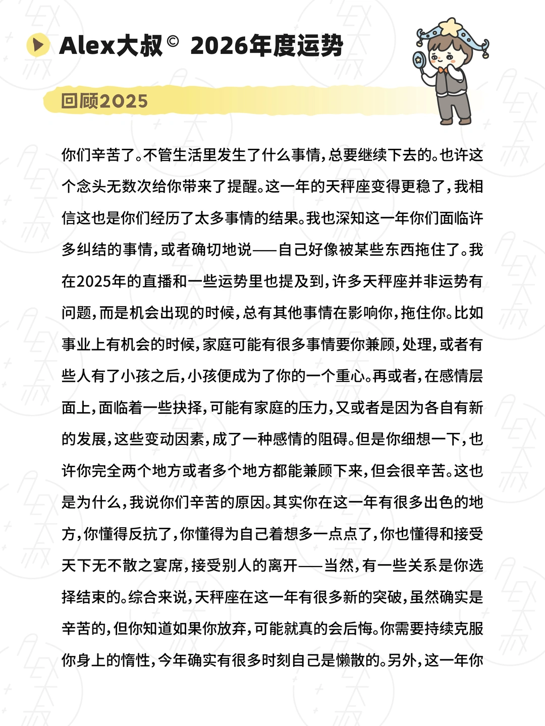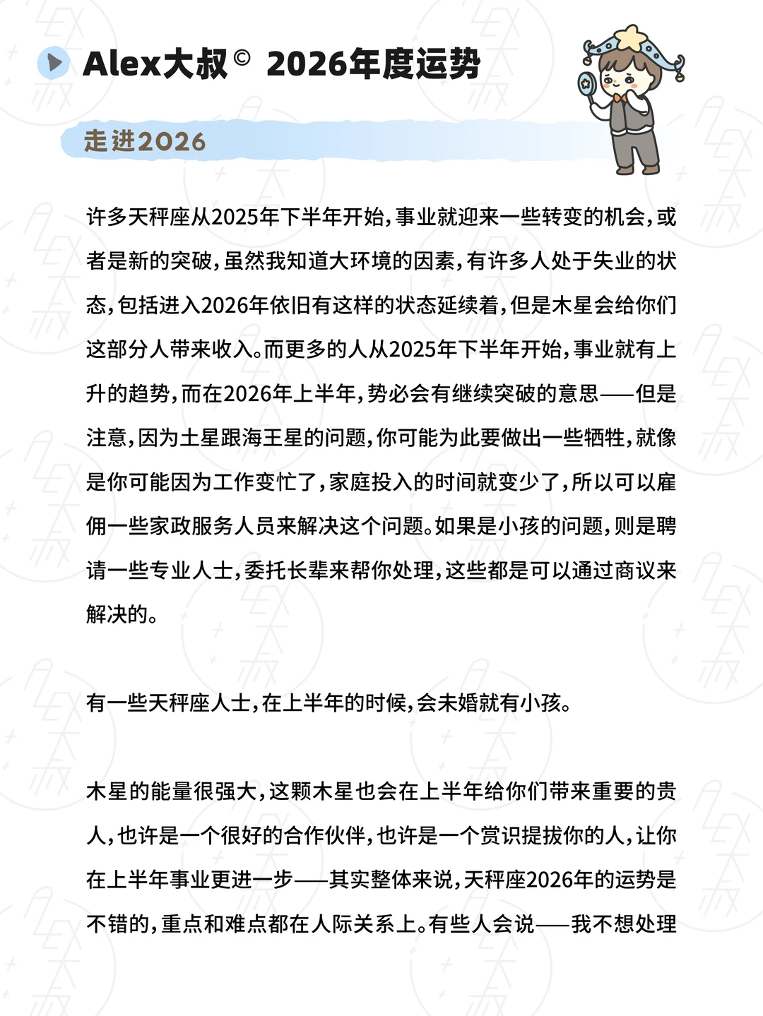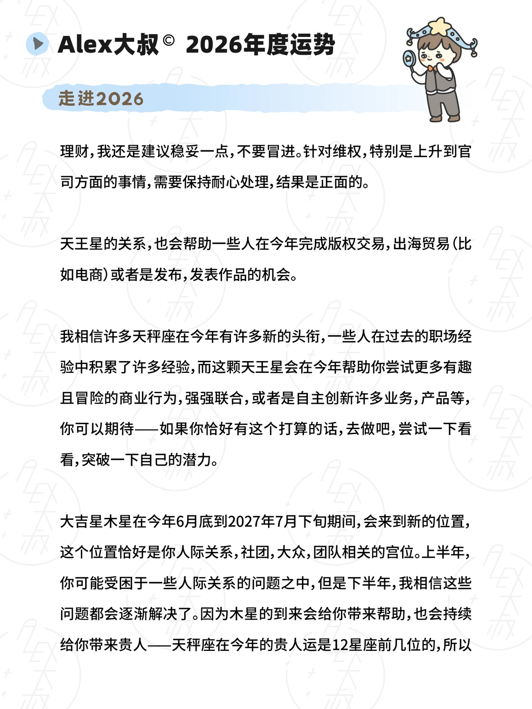 ALEX大叔 星座运势 我的星座 天秤座 2026年运势
