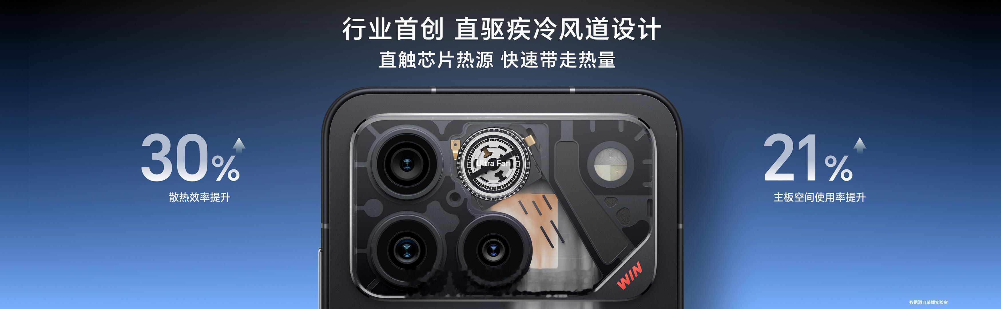 荣耀WIN刚亮相的时候,大家都在说:“这也太像那谁了吧?”其实这是设计师深思熟虑的结果,人家镜头模组的设计毕竟那块儿还有个散热风扇呢太靠下放不了,毕竟一万毫安的大电池在那摆着呢,太偏了握感又不好,所以荣耀WIN设计成了这样荣耀WIN全系都搭载荣耀东风涡轮散热,风扇体积目前是行业最小、重量最轻和转速最高的。而且行业首创直驱疾冷风道设计,直接吹芯片,能打五小时的崩铁?!后置立体进风口设计、IP68/IP69/IP69K满级防尘防水、散热风扇这么小会不会积灰?别怕,官方也帮你想到了,“5年清灰保养”服务,全面消除“横握挡手”“风道积灰”“噪音影响”的三大使用顾虑。 荣耀WIN荣耀发布会荣耀WIN年度电竞最夯机