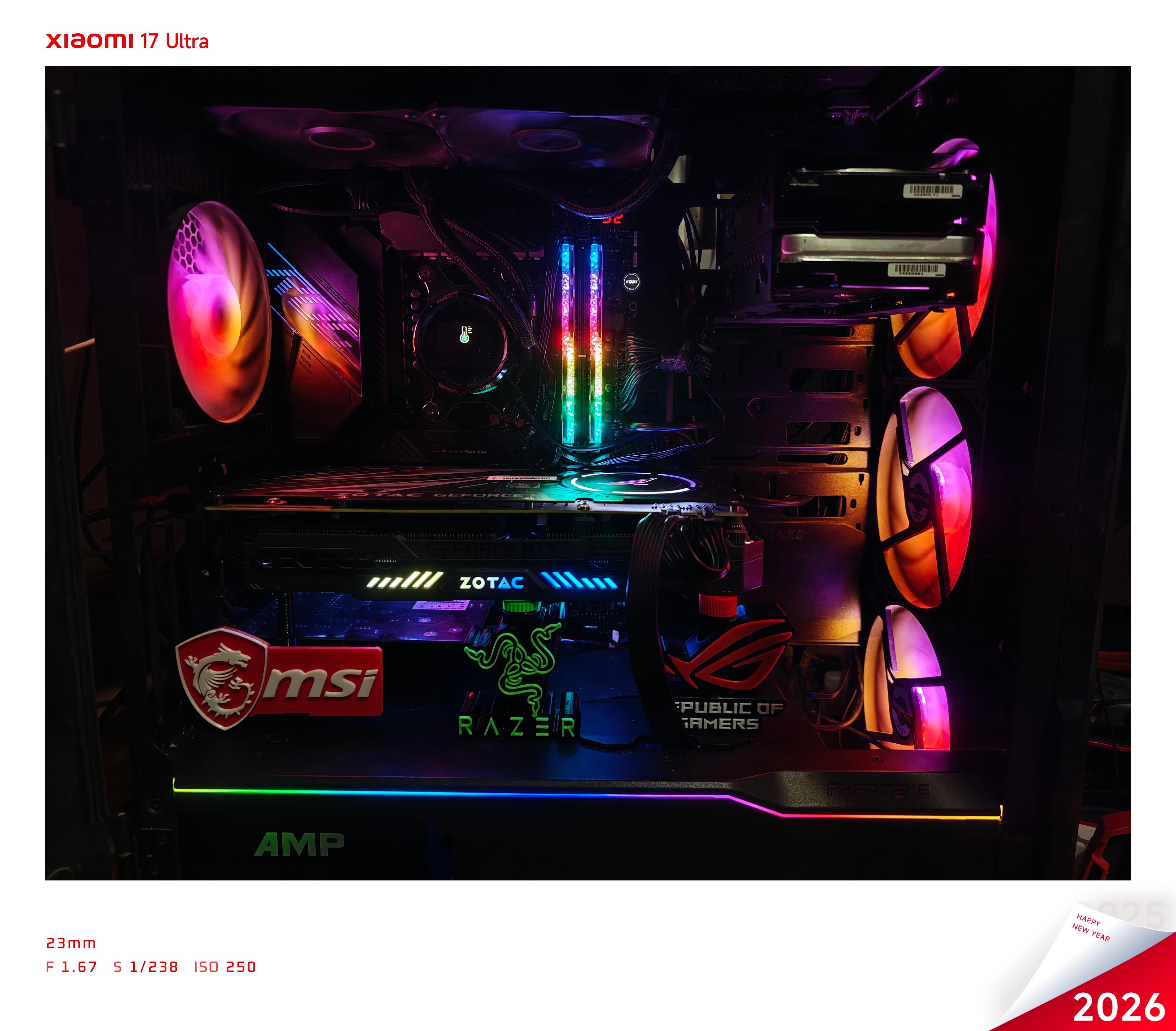 电脑终于修好了。其实就是新主板到了。买了个库存老主板。小米17ultra最大的特色就是lofic。比如这组就是默认拍照和lofic模式。但是你刚拿到手机大概率是完全不知道怎么用的。因为交互的不太方便。在拍照按钮旁边点击下箭头。然后在最底下选择。首先这个小箭头点起来就很难,我经常不小心点到人像。后来才发现点击拍照就行,不用点击小箭头。但是手机的最底部是单手最难操作的地方。所以这个交互我觉得不如放在滤镜里面。