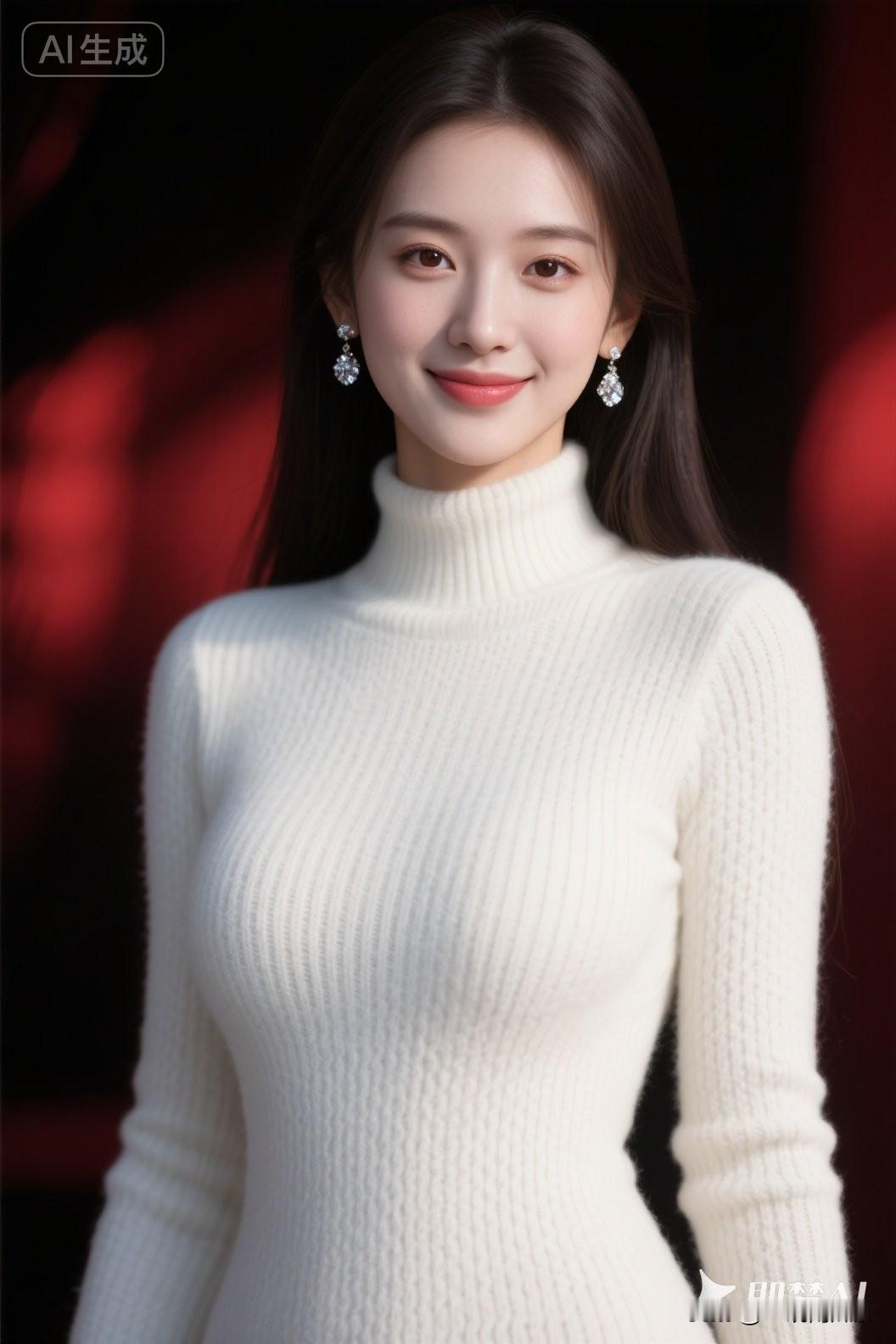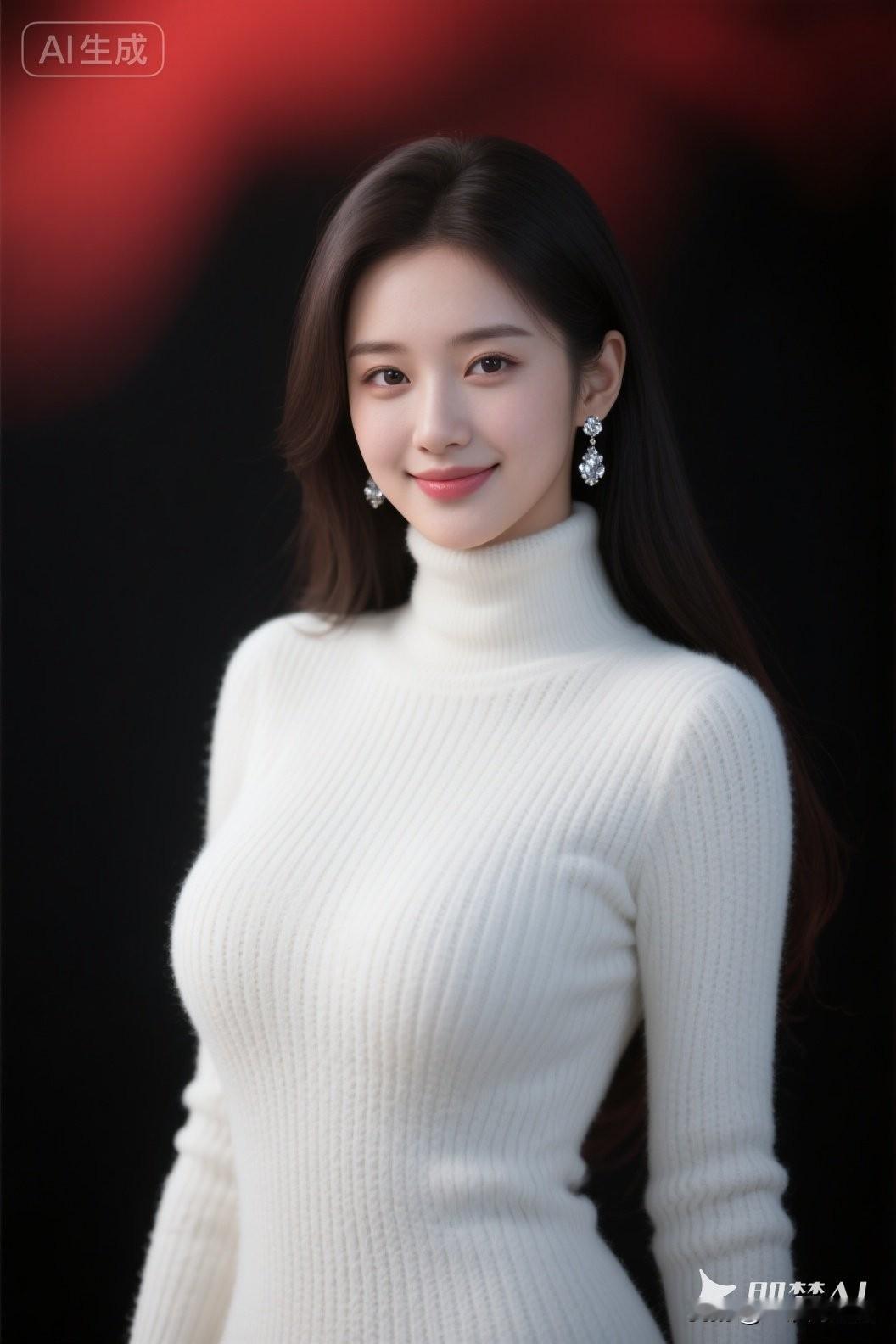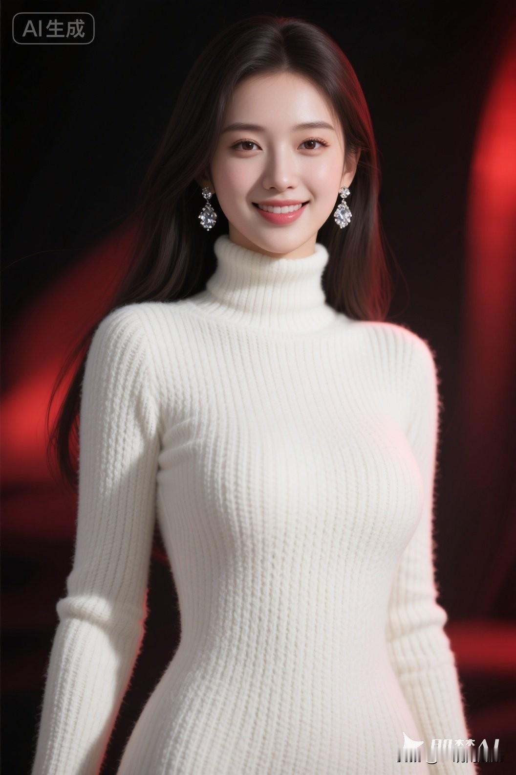 温柔优雅的白色毛衣,甜美笑容,尽显冬日暖意。