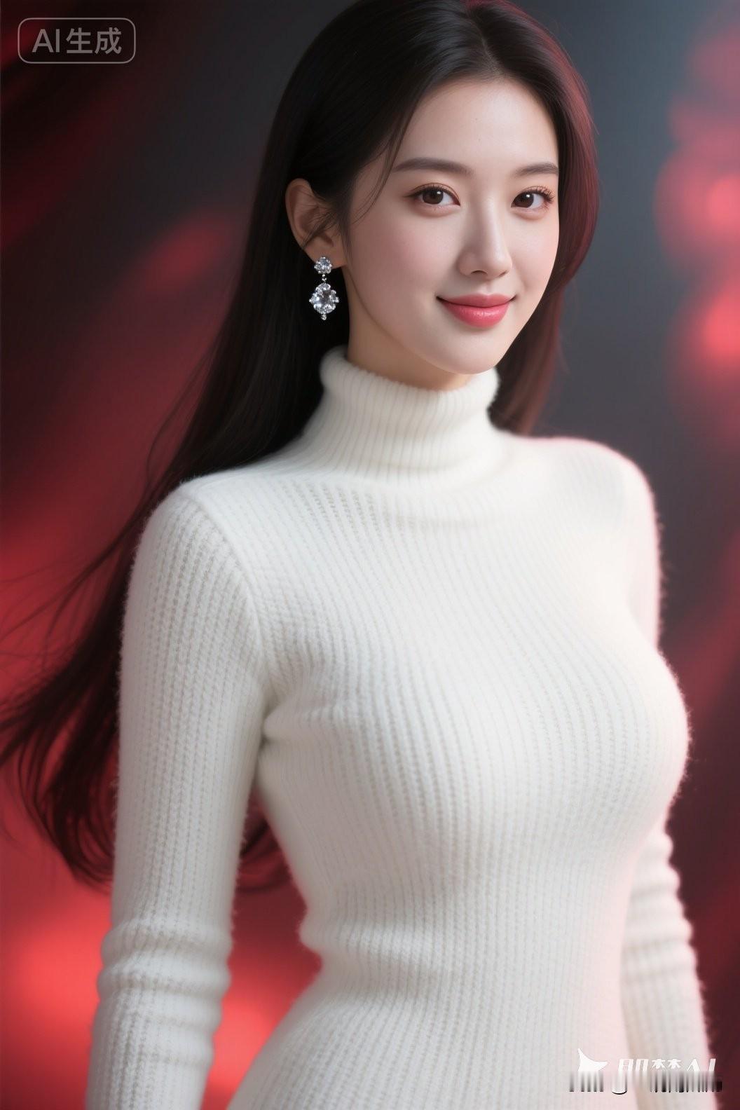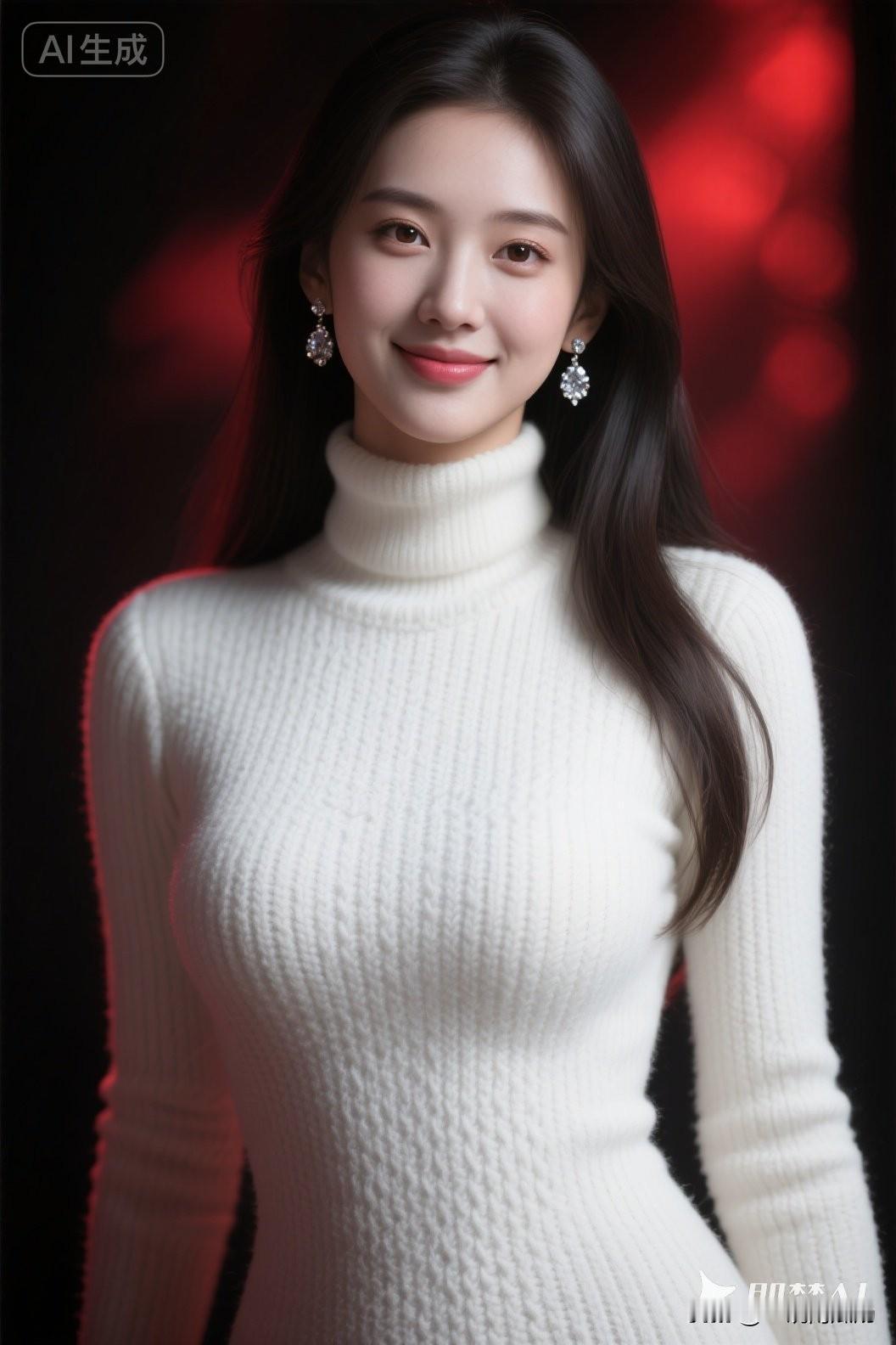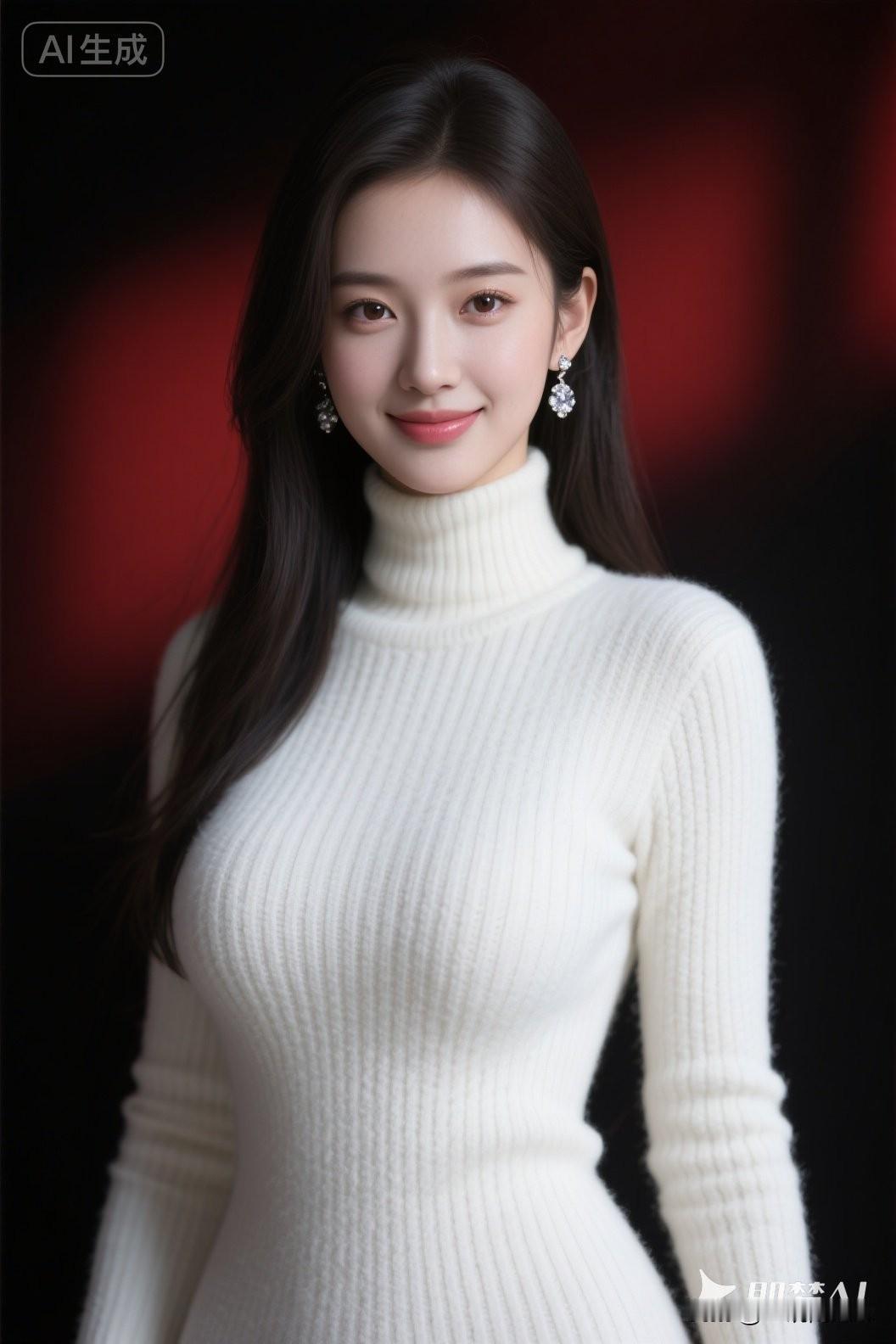 温柔优雅的白色毛衣,甜美笑容,尽显冬日暖意。