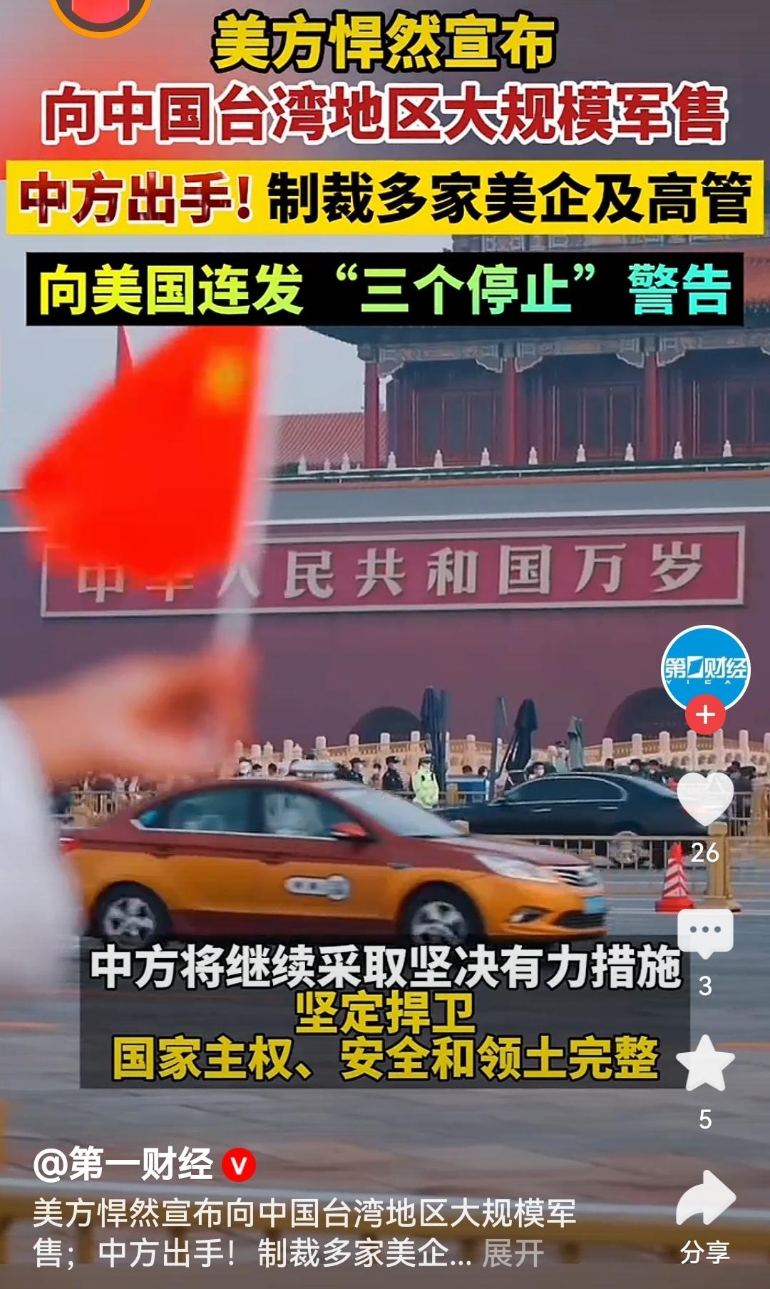中方制裁20家美国企业任何分裂国家的行径都注定失败,任何干涉中国内政的行为都必将遭到反制!中方的果断举措,彰显捍卫国家主权的坚定决心,祖国统一势不可挡![烟花][烟花][烟花] 对美企制裁 评论打卡任务