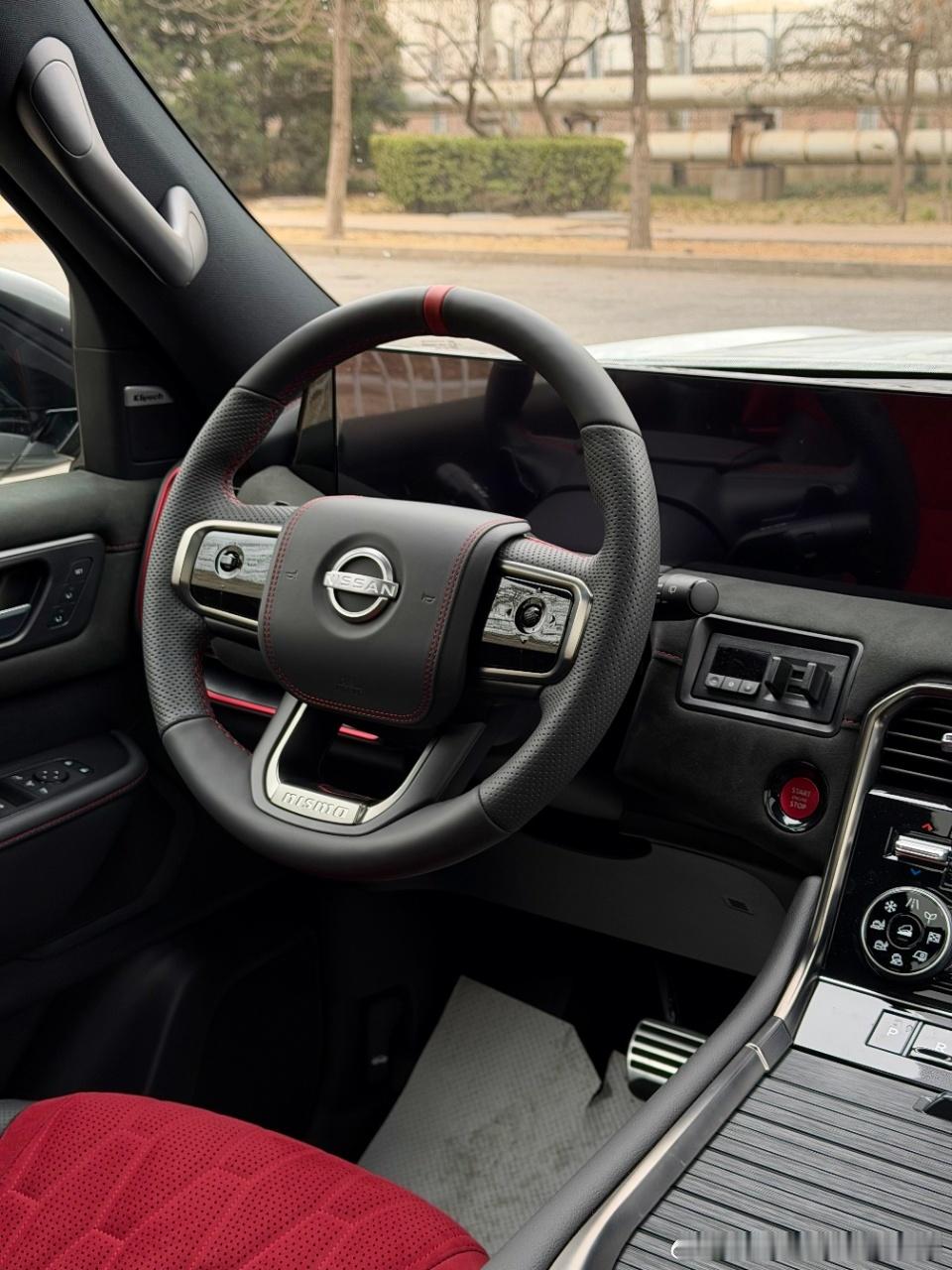 Y63 NISMO 加版大顶配!现车!对比酷路泽GR非过户车型差不多价,你会选哪个?祝师傅甄选车汽场全开 日产 Patrol Y63 NISMO(加拿大版)配置笔记版🚗 车型信息车型:Nissan Patrol Y63 NISMO市场版本:🇨🇦 加拿大版(北美规格)车身结构:全尺寸SUV|非承载式车身驱动形式:全时四驱(4WD)🔥 动力系统发动机:3.5T V6 双涡轮增压(VR35DDTT)最大马力:约 460 hp(NISMO 专属调校)最大扭矩:约 700 Nm变速箱:9AT 自动变速箱燃油类型:汽油驾驶模式:Normal / Sport / NISMO越野模式(沙地 / 雪地)🛞 底盘 & 行驶悬挂系统:NISMO 专属运动调校转向系统:电子助力转向制动系统:前后大尺寸通风刹车盘、红色 NISMO 高性能卡钳轮毂:22 英寸 NISMO 专属黑色轮毂轮胎:高性能公路 / 全地形轮胎(北美规格)🟥 外观套件(图中这台的重点)NISMO 专属前脸:黑色蜂窝中网红色 NISMO 装饰线条前保险杠:NISMO 运动空气动力学套件侧裙:NISMO 专属红线饰条后包围:运动扩散器设计后扰流板:车顶一体式后窗 & 后侧窗:原厂深色隐私玻璃车身颜色:珍珠白(Black Roof + 黑红NISMO细节)🪑 内饰配置座椅布局:7 座座椅材质:NISMO 专属真皮 + 翻毛皮拼接、红色缝线前排座椅:电动调节、加热 / 通风方向盘:NISMO 专属运动方向盘红色回正标踏板:金属运动踏板📺 科技 & 舒适配置中控屏:双联屏设计(全液晶仪表 + 中控触屏)车机系统:北美 Nissan Connect支持 Apple CarPlay / Android AutoHUD 抬头显示、BOSE 高级音响系统、三温区自动空调、无线充电、全景影像(360° Camera)、电动尾门🛡️ 主动安全(加拿大版标配重点)ProPILOT Assist 辅助驾驶、自适应巡航(ACC)、车道保持辅助、主动刹车、盲点监测、后方横向来车预警、行人 / 自行车识别