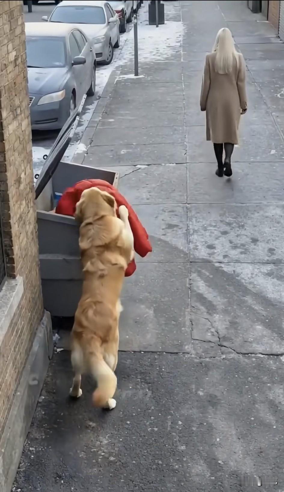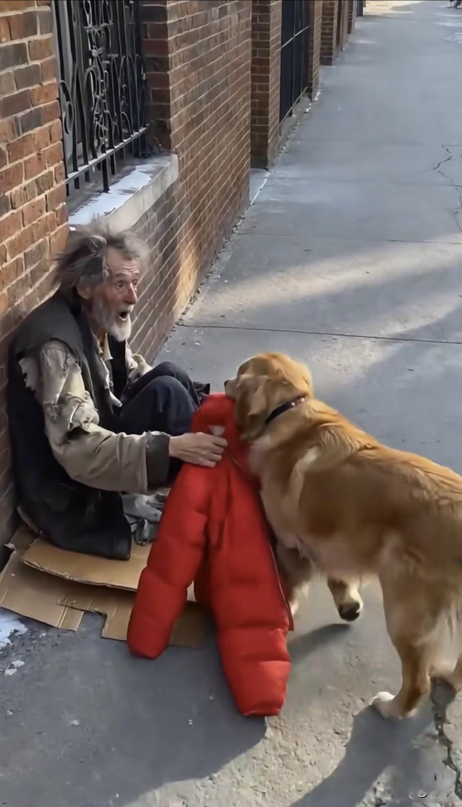 泪目了!这天一只流浪狗蹲在垃圾桶旁边休息,这时一位小姐姐拿着一件旧羽绒服丢在了垃圾桶里,狗狗看到后,立刻起身跑过去叼起衣服,然后马上狂奔起来。 它要把这件衣服送给一位流浪老人,因为同为流浪者,老人多次拿着自己为数不多食物投喂狗狗,狗狗把这份恩情记在了心里,它也想陪伴老人,老人却一直拒绝它,估计是担心自己无法养活狗狗,它叼着衣服找到了老人,老人直接泪目了,随后他穿起衣服,亲昵地搂着狗狗,这一刻他决定无论如何也要收养狗狗,照顾好它!从此一人一狗成了互相的依靠,虽然依旧很苦,可至少有了依靠!