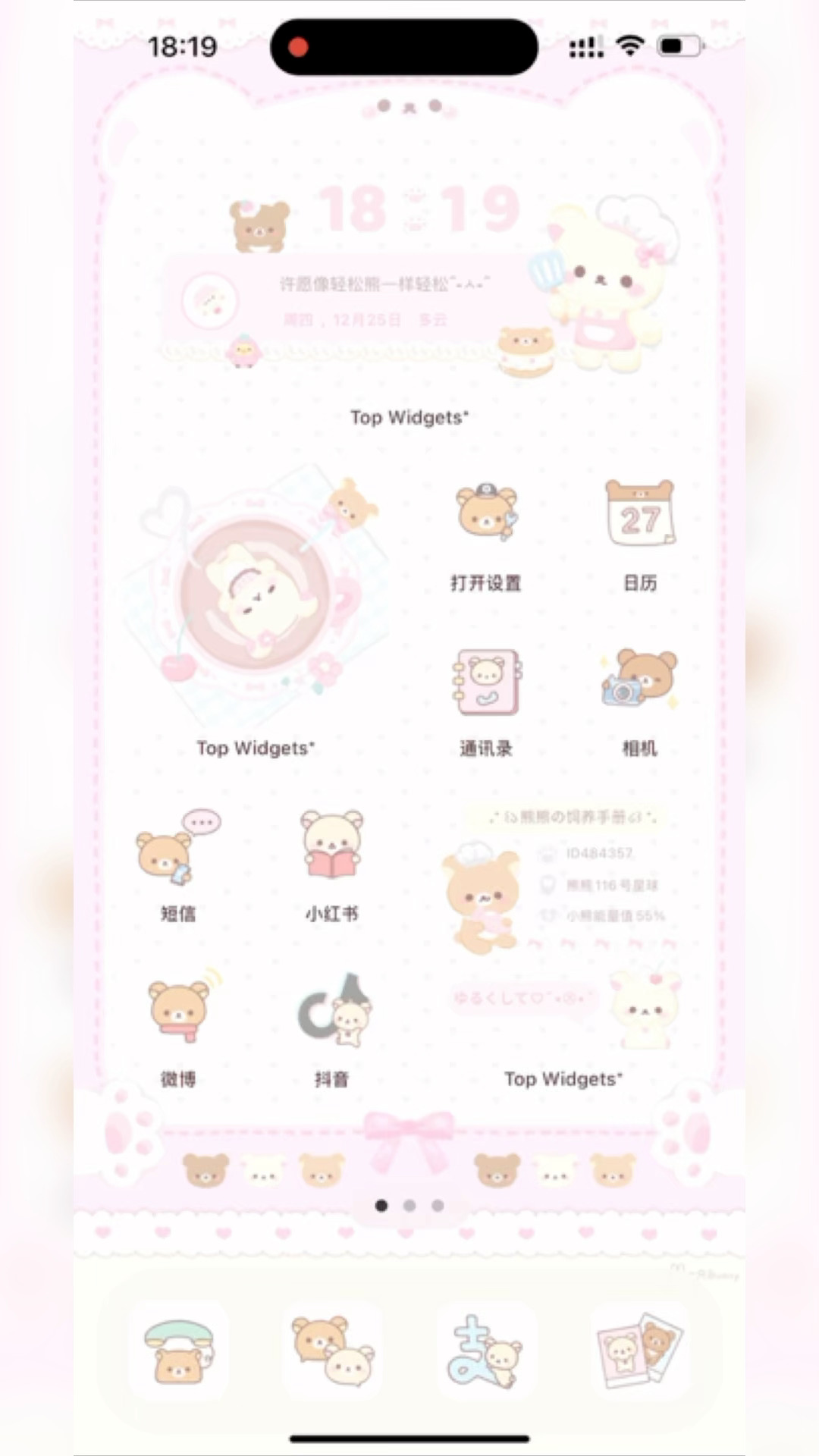 ♡˘⦁㉨⦁˘轻松熊主题3.0版画了咖啡转转唱片,熊熊手账,轻松熊手机(有熊妹和熊哥两个款式可切换) ,轻松熊纪念日日历第三张是简单的食用教程哦最后还有小组件图的小元素做头像也很适配也📱:topwidgets 🔍:一只Bunny/A12KU3请宝宝们食用哦~