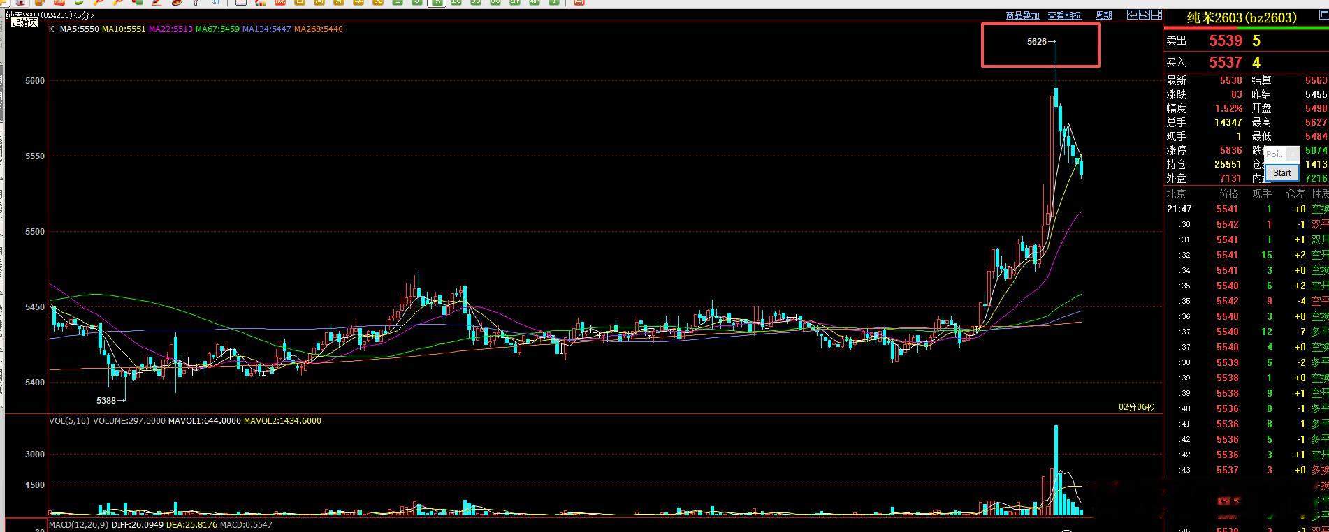 纯苯今天最高出击5626 完成周末策略的第三目标5610纯苯策略全部结束!