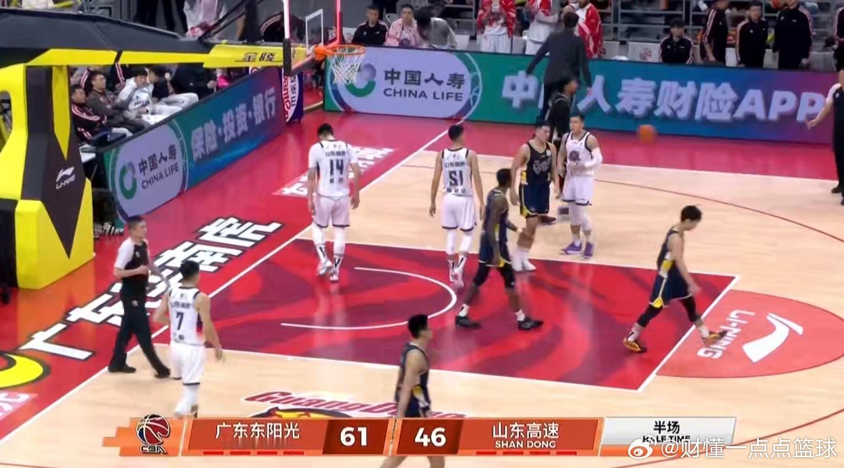 进攻端全面开花,广东宏远男篮半场轰下61分,暂时以61比46领先山东男篮15分!广东第二节一度被山东反超了1分,杜指导连叫两个暂停后,广东男篮吹响了反攻的号角,连续打出得分高潮,分差逐渐拉开到了双位数!非常精彩的比赛!徐杰上半场只休息了38秒,真是劳模啊,砍下11分2板6助攻,反观国手高诗岩,出战14分钟,怒砍0分,只送出了5个助攻。孰高孰低,不就太明显了吗?其它球员得分:萨姆纳18分,萨林杰14分8板,张文逸命中三个三分,拿下9分2板1助攻。