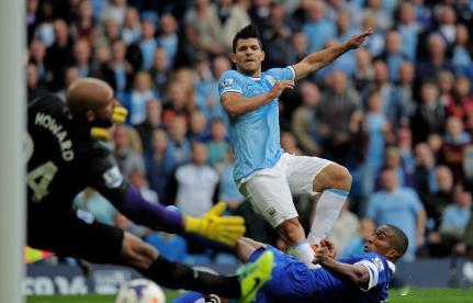 【英超-阿圭罗造2球新援锋霸破门 曼城3-1主场4连胜】英超第7轮一场焦点战在伊蒂哈德球场展开角逐,曼城主场3比1取胜埃弗顿。卢卡库率先破门,内格雷多和阿圭罗进球反超,霍华德扑救点球自摆乌龙。曼城主场4连胜,埃弗顿开季不败被终结。英超