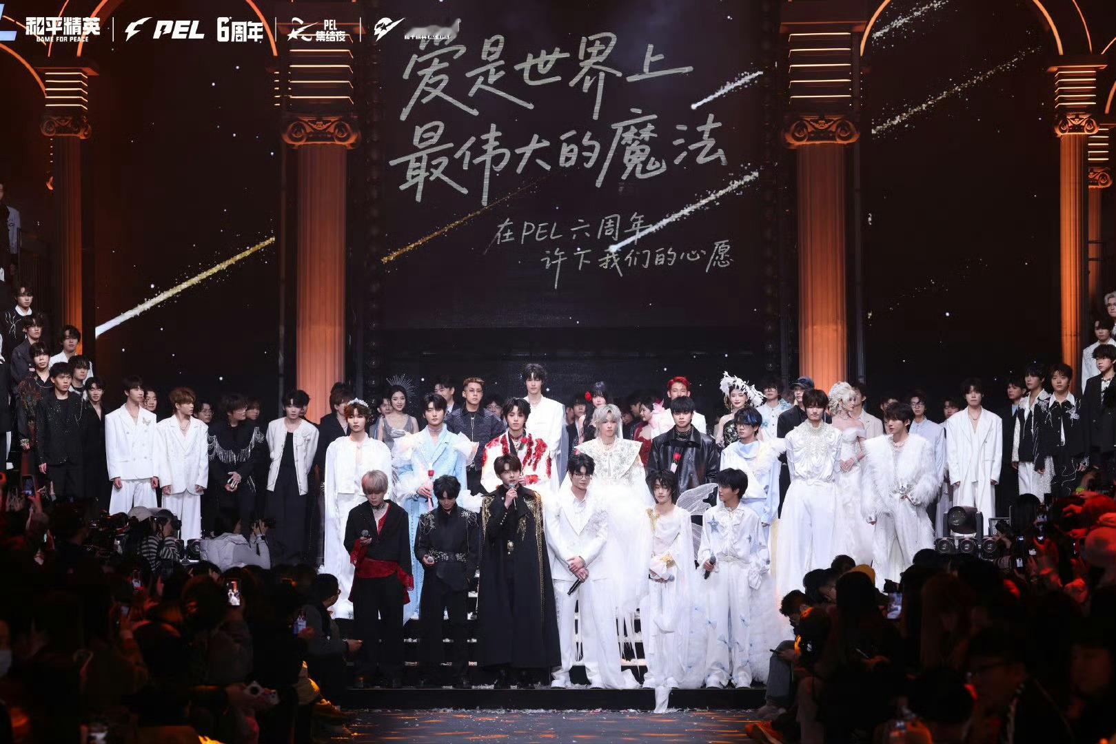 PEL集结夜权威穿搭大赏一秒穿越PEL魔法秀场 那件看似简约的灰色大衣,其实藏着温感变色设计,体温升高时会浮现战队slogan,选手拥抱队友的瞬间,两道标语在中间连成心形,魔法秀场连撒糖都这么有电竞味。