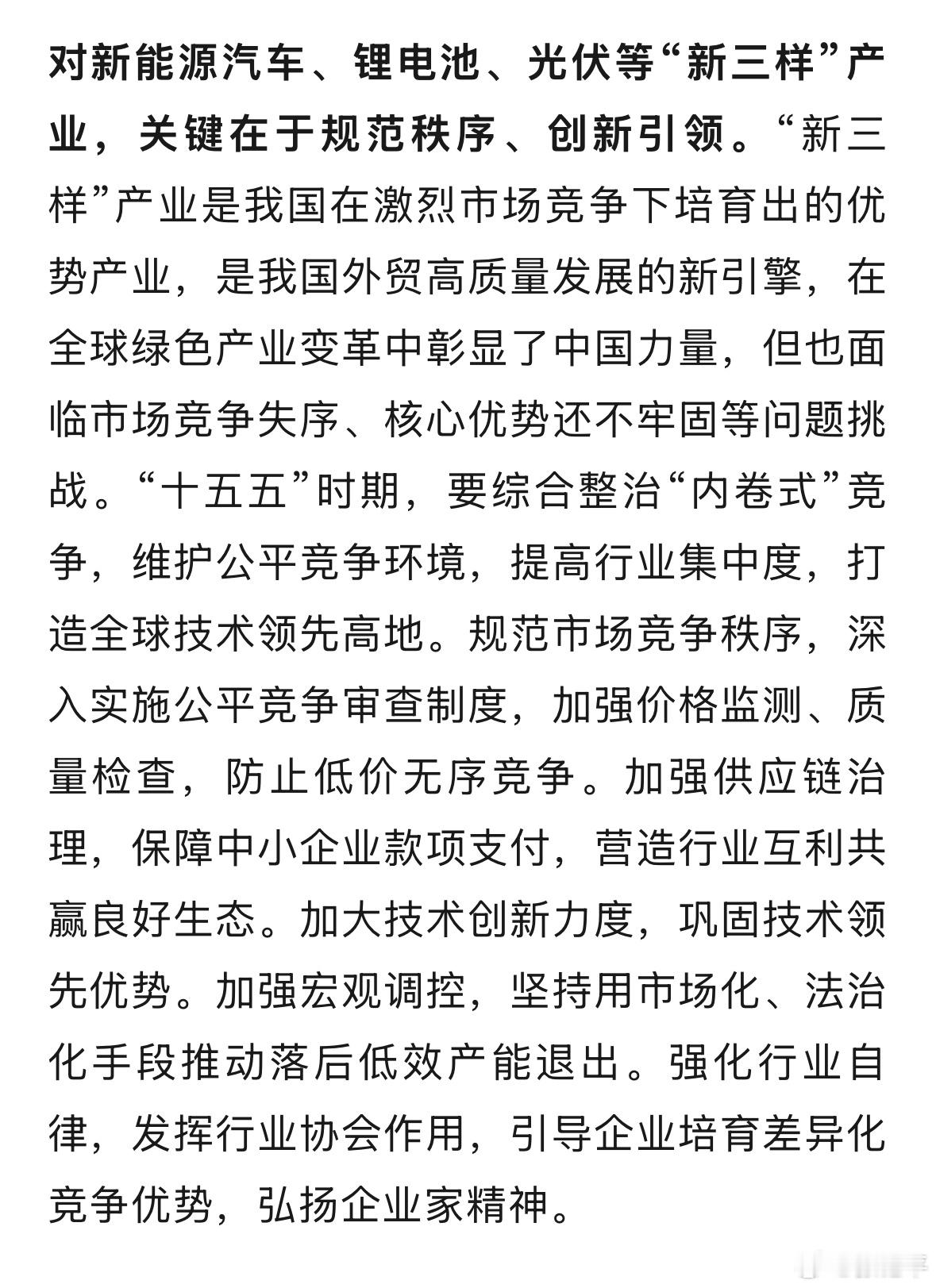 发改委发文防止新能源汽车无序竞争规范市场竞争秩序,深入实施公平竞争审查制度,加强价格监测、质量检查,防止低价无序竞争。这项监督绝对是明年的重点,已经在反复强调了。新能源汽车大v聊车