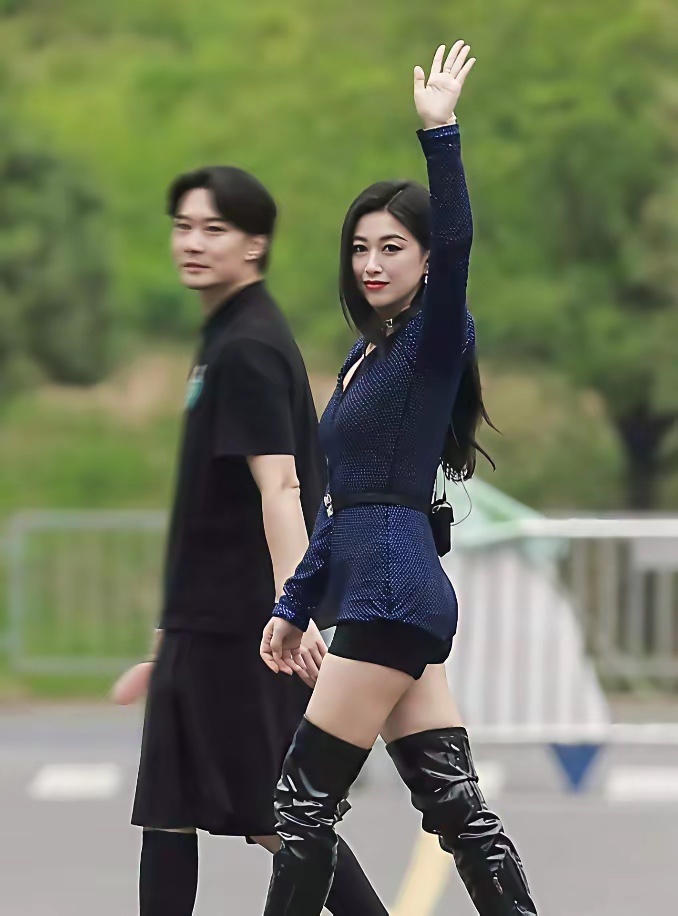 吴艳妮在成都穿着短裤大腿看起来很粗壮,表情自信又张扬
