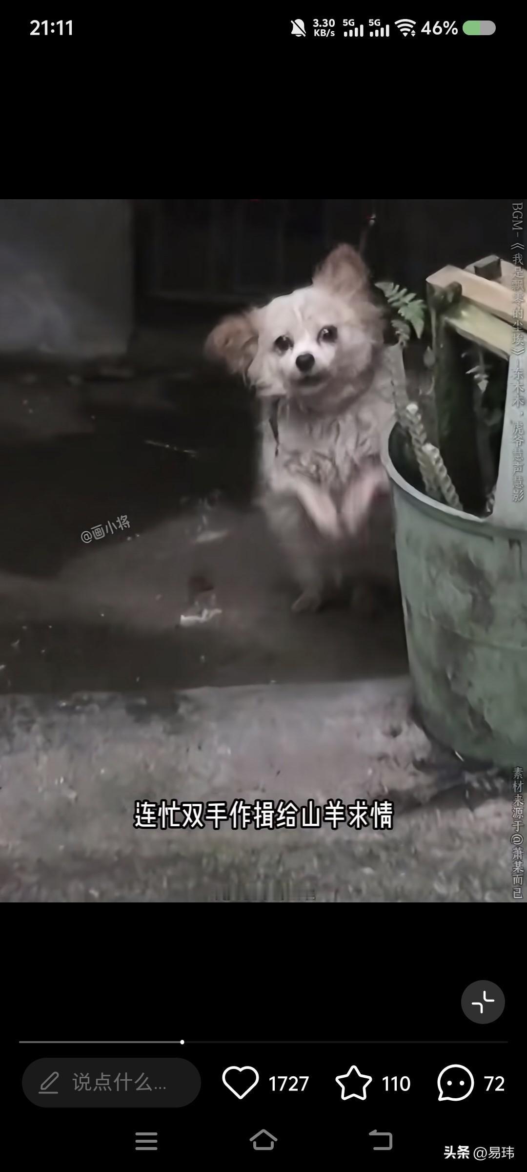 泪目了!一位大哥家养了一只山羊和一只狗狗,平时它们就一起生活,虽然不是一个种族的动物,却已经产生了很深的感情,可最近由于大哥家来客人了,准备把山羊杀了炖火锅招待客人。 山羊凄惨的哀嚎着,这时候被铁链拴着的狗狗看到眼前这一幕,连忙双手不停作揖给山羊求情,明明它自己过得并不好,还在给山羊求情。它的眼里饱含着泪水,它的心里也非常难受着急,这是和自己朝夕相处的伙伴啊! 大哥和客人看到这感人的一幕,不免心生怜悯,于是就决定放弃杀山羊了,狗狗成功的救了可怜的山羊,它们可以继续一起开心的生活了。