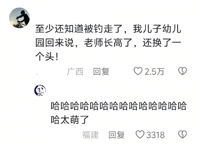 至少还知道被钓走了,我儿子幼儿园回来说,老师长高了,还换了一个头!