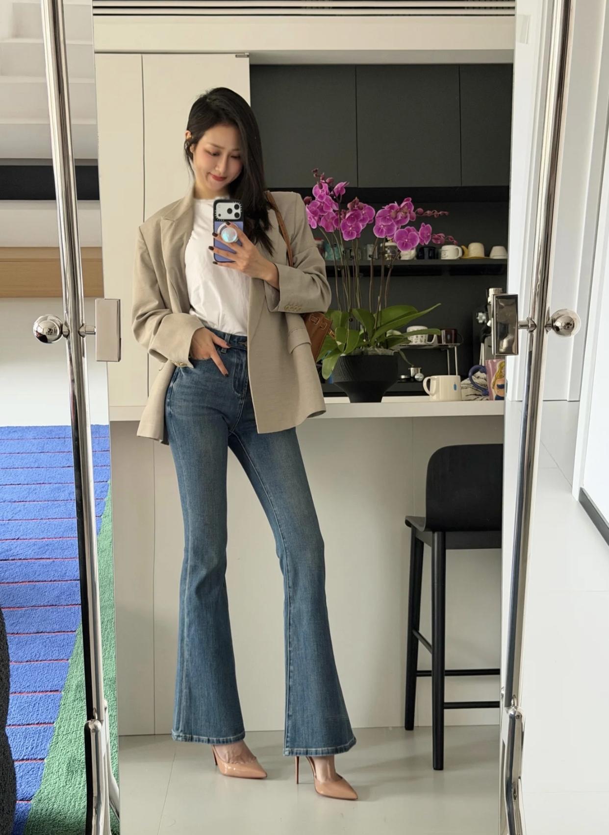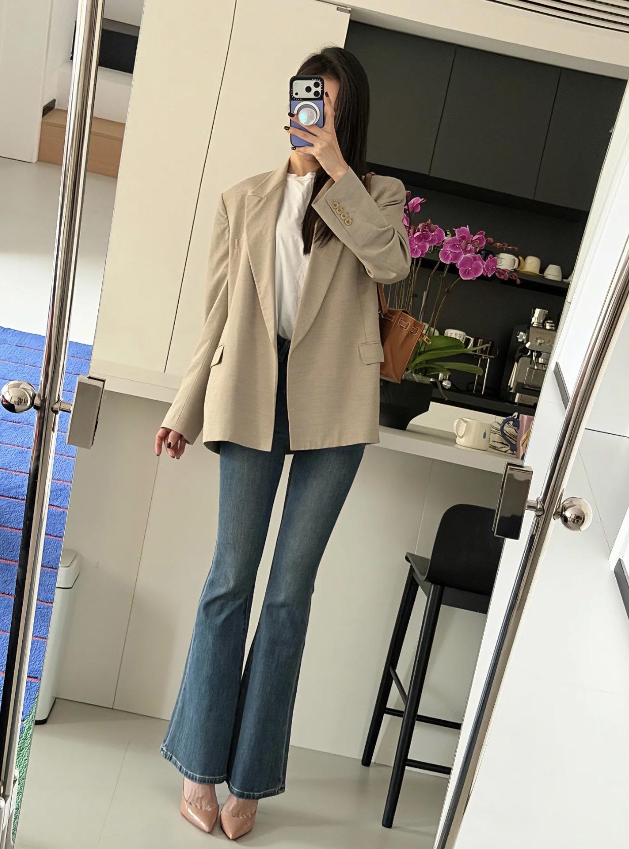 米色西装外套+牛仔裤,简约优雅,自信满满!💄👠