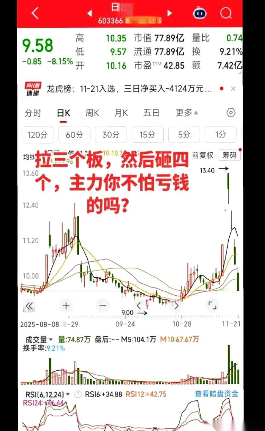 别看了,那五根通天大阳线,不是拉你上天堂的,是给你挖的坑。 人家的成本就在那儿。舞台搭好了,就等你这种激动得嗷嗷叫的观众往里冲。 然后呢? Duang Duang Duang Duang,四天给你干到地板上。 你以为是恐慌盘?是大伙儿一起跑? 天真了。真要是那种谁也卖不掉的死局,两天,就两天,庄家自己就得掏钱出来撬开个口子,不然他的货也烂在里面了。 可人家偏不。 人家给你留个门缝,让你能买卖,给你一种“我能跑掉”的幻觉。 真相是啥? 真相是,第二天雪崩的时候,人家已经把六成的货,笑眯眯地塞到你们这些伸手接“飞刀”的人怀里了。 剩下的那些筹码,对他们来说,已经跟白捡的没区别了。 继续往下砸,砸成白菜价。 一来,把价格彻底干趴下,方便他们日后用零花钱再把带血的筹码捡回来。 二来,人家还能反手借一堆股票卖掉,等价格跌到底再买回来还。两头吃,你说气不气? 你盯着分时图,心跳加速,算着自己亏了多少钱。 人家呢?人家点根烟,看着计算器,算着这一票又完成了几个小目标。 你以为你在跟市场博弈,其实,你只是不小心闯进了人家的屠宰场。