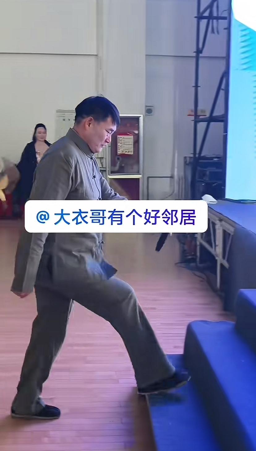 大衣哥登台四步骤,流程越来越熟练了,一点不紧张,有了大腕的气场。先站台下,昂首挺胸,然后大步流量上台阶,上了台先侧身,边走边告白,然后正对观众鞠躬,太完美了!
