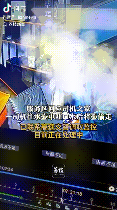 必须严惩!四川遂宁,工作人员发现司机之家的水壶不见了,查看监控后发现,有一位司机