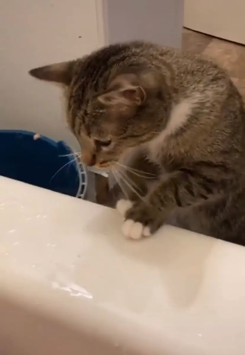 “猫咪不会说话,但一直在默默守护主人”[送心]猫咪是比较怕水的动物,所以很多铲屎官在洗澡的时候,猫咪都会在门口默默守护着,如果时间太久,它们还会在门口焦急地“喵喵叫”,十分担心主人的安危。国外一位网友在洗澡的时候记录下了感人的一幕:网友在浴缸泡澡的时候,猫咪以为她有危险,一直在旁边担忧地守护着,直到她问猫咪:“你要救我出来吗?”猫咪似乎一下子就听懂了,边喵喵叫边拼命把她往外拉,直到把她拉出浴缸才放心。虽然宠物不会说话,但一直在默默爱着它的主人呀~