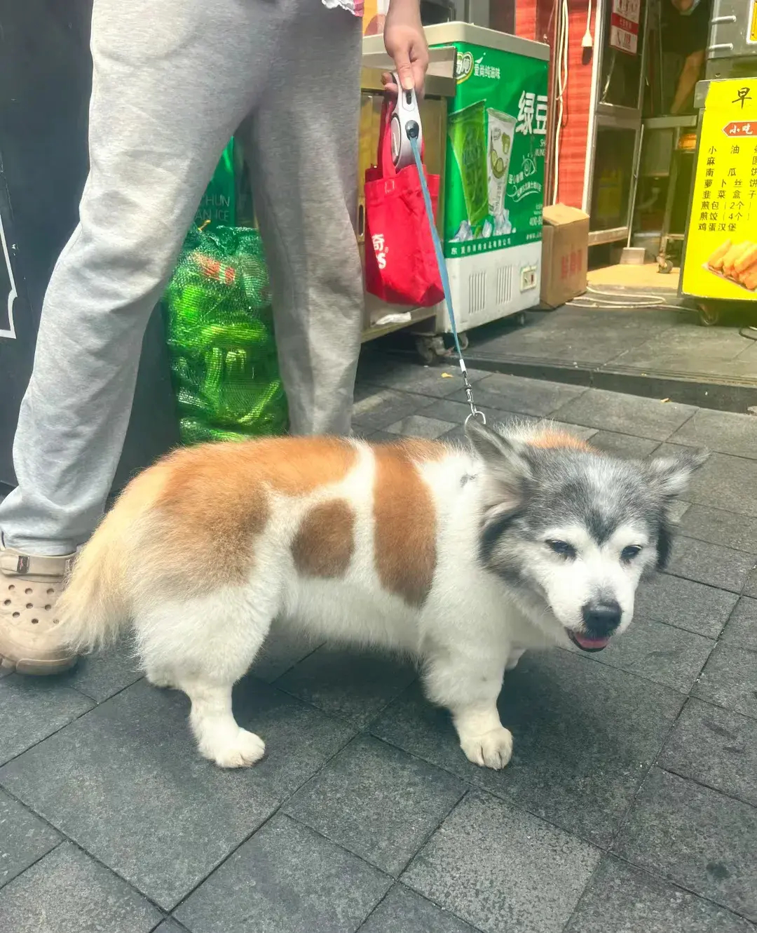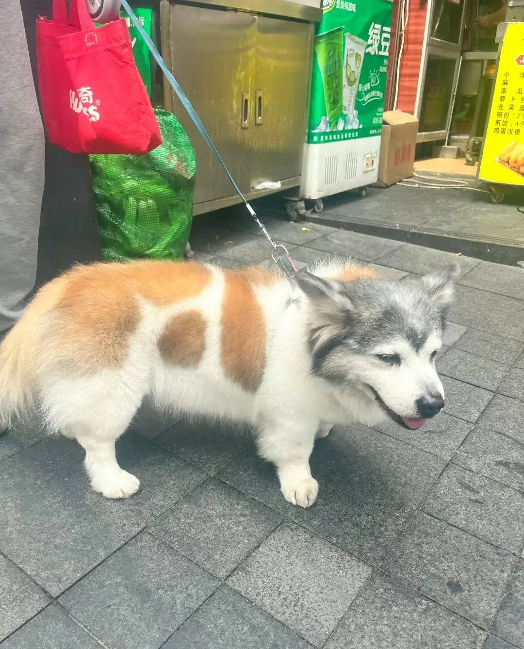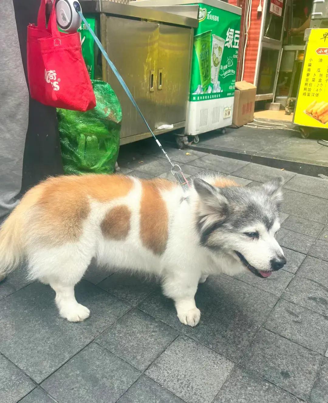 出来吃饭在公司附近看到的这是什么跟什么混的呀头像哈士奇腿短像柯基身上像橘猫整体看起来像是组装的难道这就是传说中的哈基咪!