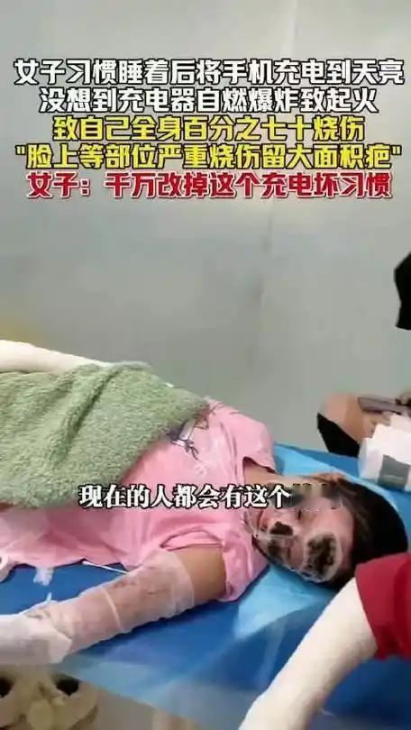 2025年12月27日凌晨,湖北一女子因习惯将手机放枕边充电过夜,充电器突发自燃爆炸,引发火灾致其全身70%特重度烧伤,面部等部位留大面积疤痕。事故警示:切勿整夜充电,避免使用劣质配件,充电时远离易燃物。手机充电器着火 手机充电器火灾