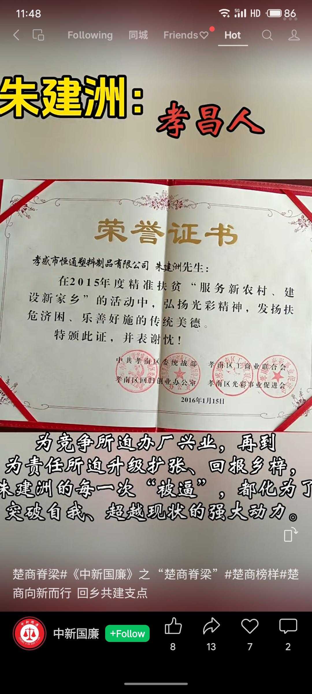 朱建洲,李昌人,中共党员,区政协委员。作为恒祥塑料制品公司总经理,他投资扩厂,积极解决当地就业。曾获精准扶贫荣誉,其企业发展历程体现了从竞争所迫到责任驱动的转变,展现了楚商回馈乡梓、实干担当的榜样力量。