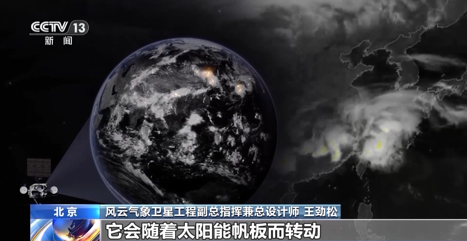 风云气象卫星工程副总指挥兼总设计师王劲松:这是我国首次在静止轨道气象卫星上实现太阳的成像观测,由于成像仪放在卫星的太阳能帆板上,会随着太阳能帆板而转动,在转动过程中会发生一些抖动,因此对成像仪稳定性要求特别高。