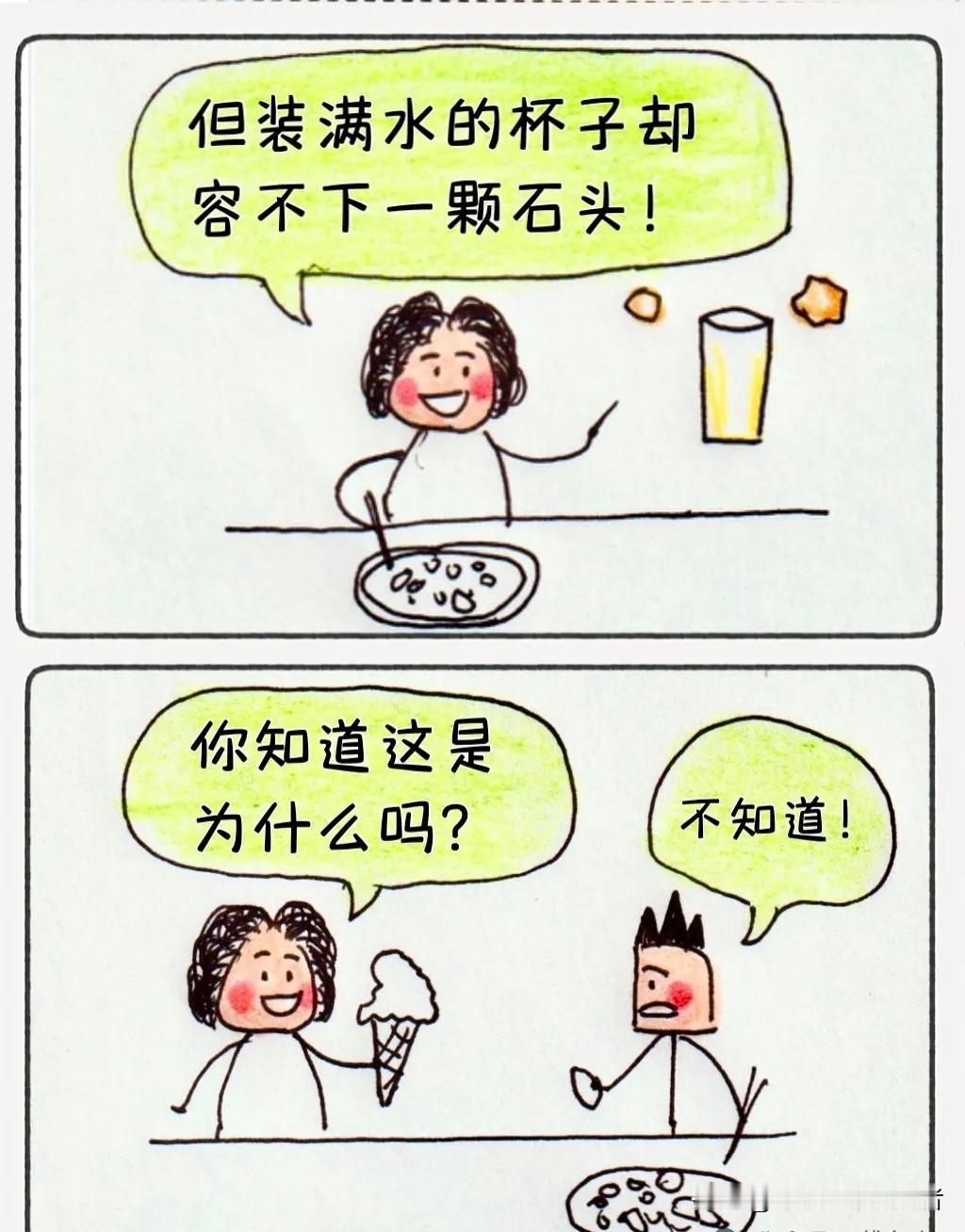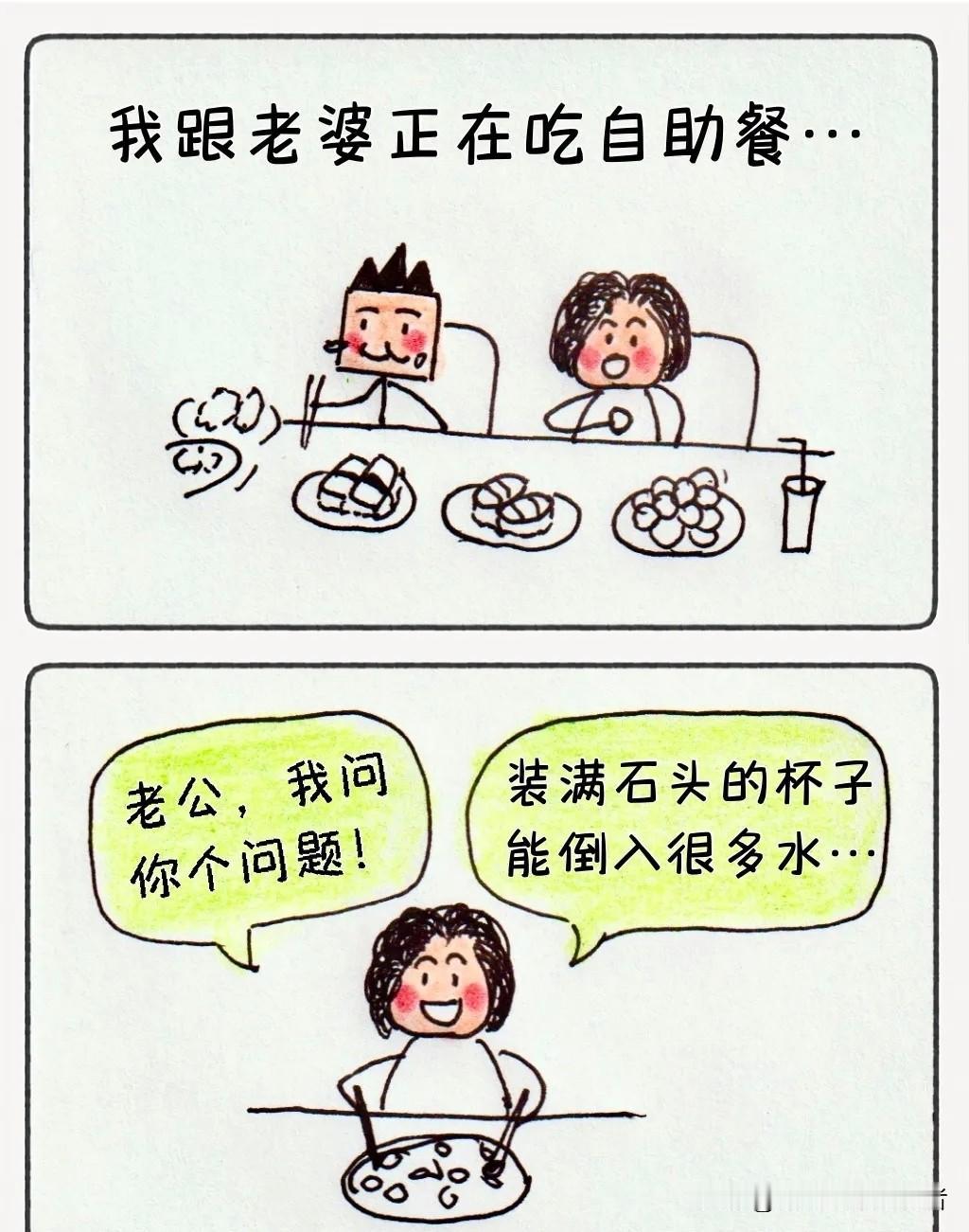【爆笑漫画】装满水的杯子为啥放不下一颗石头?老婆一句话🤣我悟了!