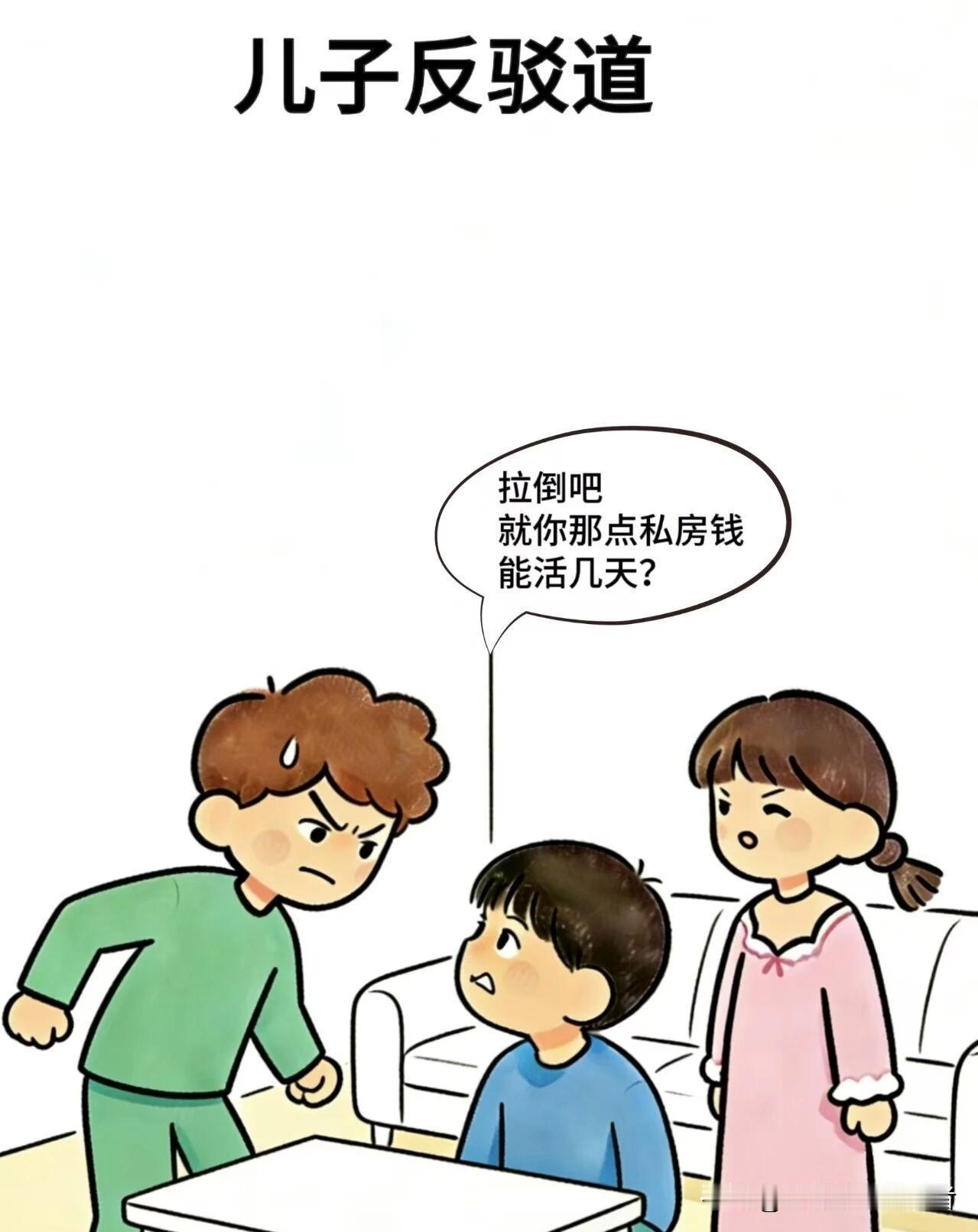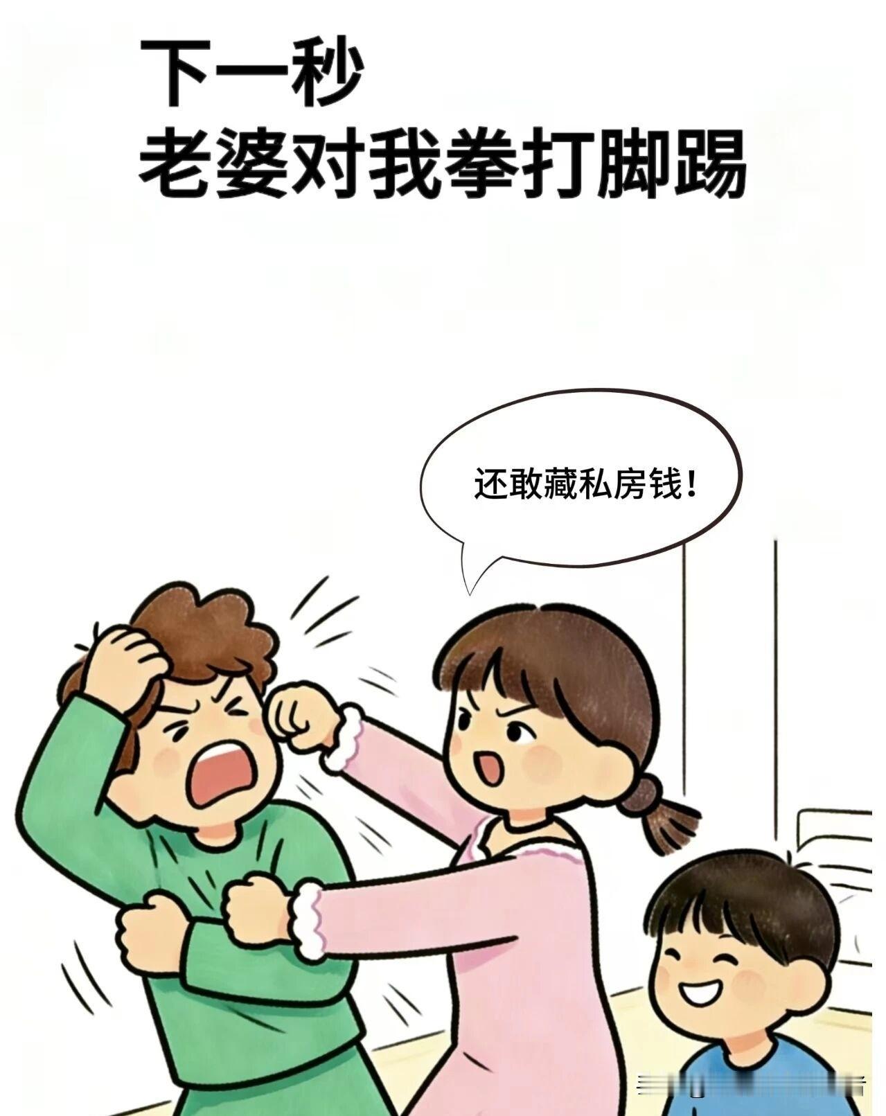 趣味漫画: 问儿子:我跟你妈离婚,你跟谁,儿子:跟我妈,我怒骂白眼狼,儿子:拉倒吧,就你那点私房钱,能活几天,老婆:还敢藏私房钱搞笑漫画夫妻