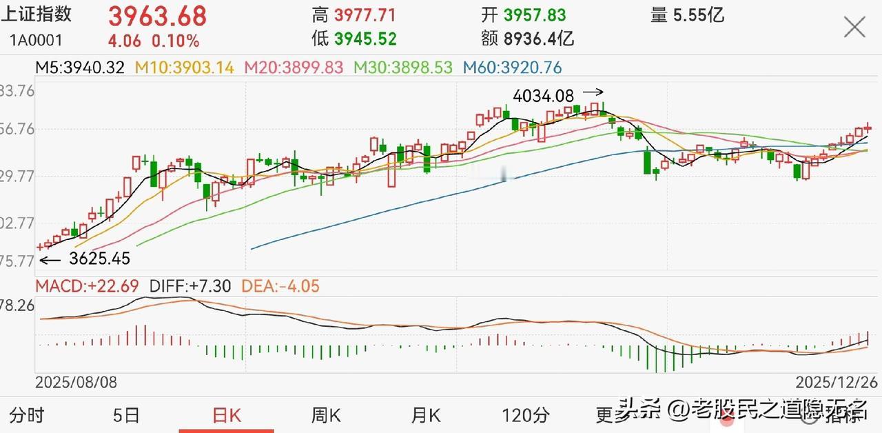 中期调整结束了吗? 是否就此踏上牛市征程? 元月的走势很重要… 上一篇说了,八连阳,说明机构已经转向,至少,短期调已经结束。 那么,整个中期调是否已经结束了呢? 个人认为,重点关注元月的走势: 1,如果接下来(元月)横着走,那么大概率二月还会有一个坑。 2,如果整个元月一直保持碎步向上走,比如过4100点甚至4200点,那么,中期调整当然就结束了。 所以,元月是一个非常好观察的月份,因为,元月大的调整不会有,万一横走,至少元月也没什么风险。