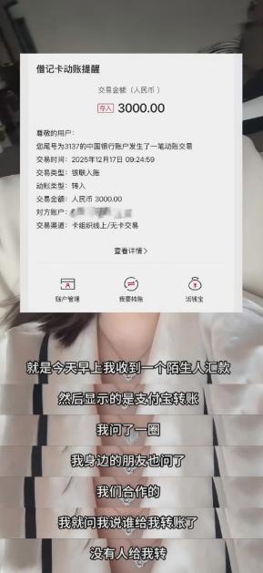 这是聪明人!黑龙江哈尔滨,女子一觉醒来,发现支付宝多了3000块钱,可在她看来,这并不是什么天上掉馅饼的事,找到转账人,对方说是某个借款平台要求他将这笔钱转到自己账户上,女子当场报了警,并表示:你们谁要是被骗3000块就抓紧时间报警,别找我,虽然钱在我这呢 谁早上醒来发现账户多了几千块,心里不得咯噔一下? 事情很简单,这位哈尔滨女士一觉醒来,习惯性地打开支付宝查看账单,结果发现多了一笔3000元的转账。 这笔钱来得莫名其妙,付款方是个完全陌生的账号,换作有些人,可能会先高兴一阵,琢磨是不是哪个亲友转错了,或者是谁的还款记错了人。 但这位女士心里很清楚,天上不会掉馅饼,这笔来路不明的钱,大概率是个麻烦。 她没犹豫,顺着转账记录找到了转账人,主动发消息询问情况。 对方回复得也直接,说这笔钱是某个借款平台让他转的,具体为什么转到这位女士账户,他也说不太清楚。 这话一出来,女士更警惕了,她当场就告诉对方,自己要报警处理,还明确表态:“你们谁要是被骗3000块就抓紧时间报警,别找我,虽然钱在我这呢。” 说实话,这反应真的太清醒了,说白了,现在的诈骗套路越来越多,这种“主动送钱”的操作,根本不是意外,大概率是精心设计的陷阱。 结合常见的诈骗案例就能想到,这很可能是一种新型的“钓鱼网贷”骗局。 说不定就是骗子利用他人信息在网贷平台贷了款,然后把钱转到陌生账户,之后再冒充平台客服找收款人称“转错了”,要求把钱退回指定账户。 要是真把钱退回去,后续网贷平台就会找上门来催债,到时候不仅钱没了,还得背上莫名的债务。 这位女士的聪明之处就在于,她没被“意外之财”冲昏头脑,更没想着私下处理。 她知道一旦自己动了这笔钱,或者私下跟转账人交易,后续不管出现什么问题,都说不清楚。 而选择报警,让警方介入处理,既是保护自己,也能帮着查清背后的真相,说不定还能帮到真正被骗的人。 可能有人会问,遇到这种陌生转账该怎么办? 其实这位女士的做法就是标准答案,首先别碰这笔钱,不管对方说什么理由,都不要私下转账退回,因为正规的转错账,平台会有正规的退回渠道。 然后第一时间联系支付平台客服,说明情况并申请协助核实,同时直接报警,把转账记录、聊天记录等证据都保存好。 现在很多诈骗都盯着大家的支付账户,手段层出不穷,有的冒充客服要退款,有的诱导贷款转账,还有这种直接“送钱”设套的。 记住一点,凡是来路不明的钱,都不能要;凡是要求私下转账退回的,全是诈骗,要是抱着侥幸心理,觉得能占点小便宜,很可能会吃大亏。 这位哈尔滨女士的处置方式,值得所有人参考,不贪、不慌、及时报警,把专业的事交给专业的人处理,才能最大程度保护自己的权益。 毕竟,真要是天上掉馅饼,也轮不到普通人随便接住,大概率都是带着钩子的陷阱。 对此您有什么不同的看法,可以在评论区留言讨论!!!