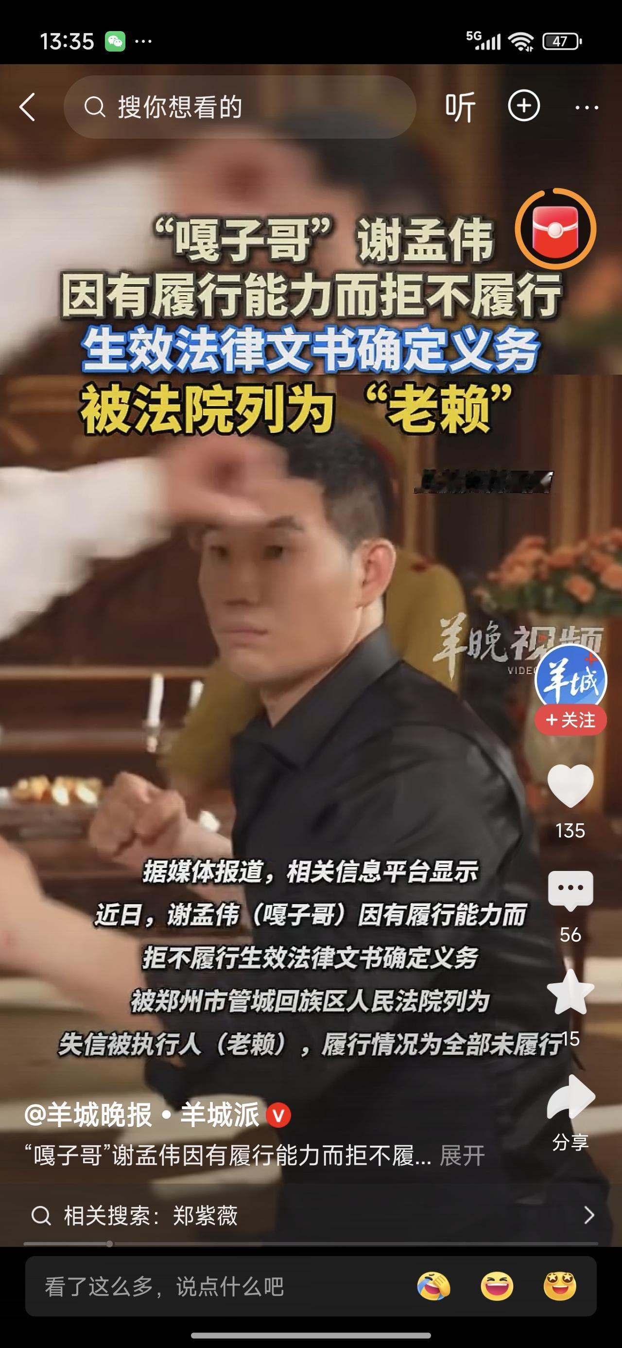 “嘎子”终究没把握住,成老赖了!有能力却拒不偿还,还可以这样吗?咋回事,是现金吗?要是在银行卡上,一刷就没了吗?咋还能有能力拒不偿还呢? 谢孟伟以后要是拍不了电视剧,卖不了货,这老赖就能一直当下去,由奢入俭难啊!高开低走的人生,也是真不好过