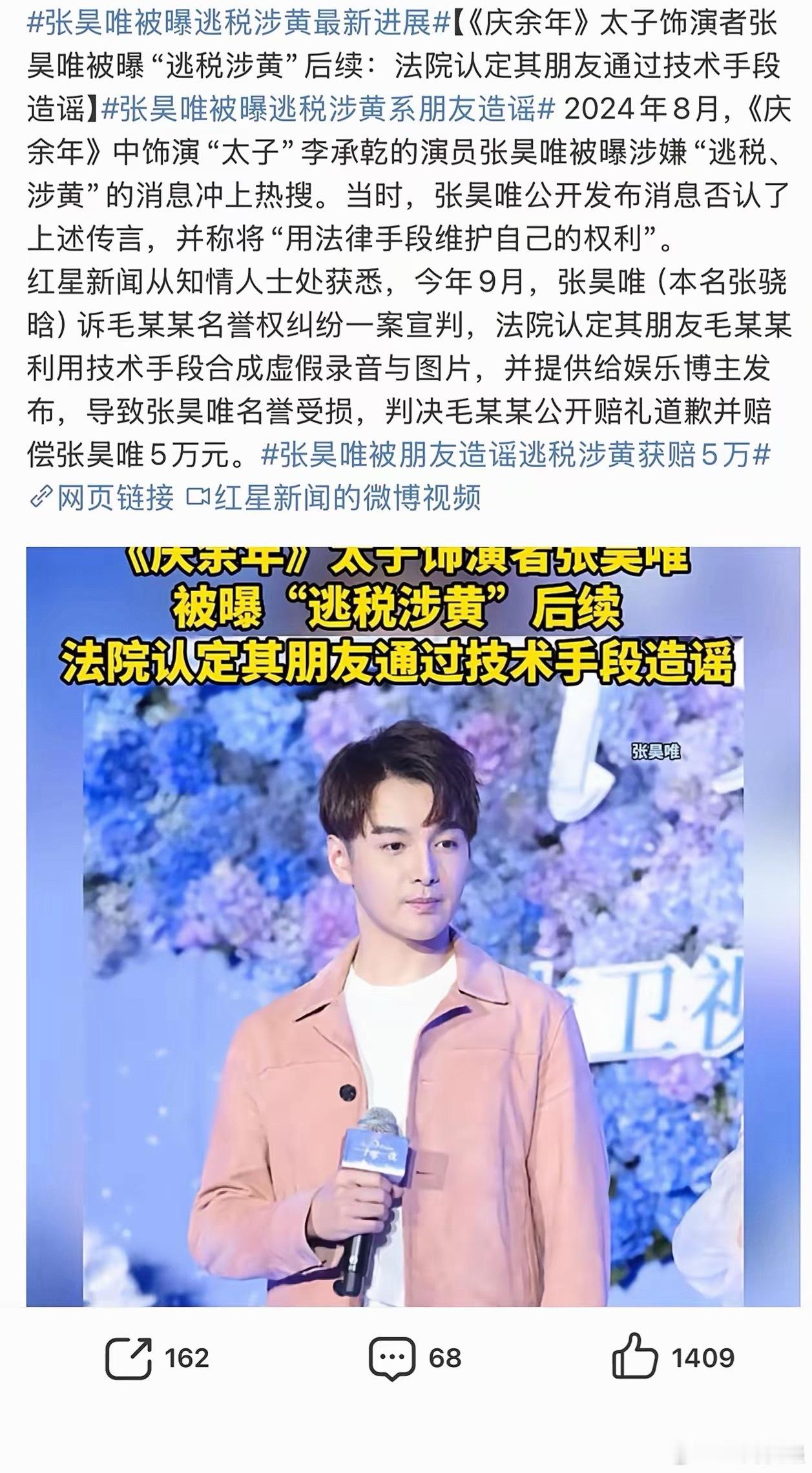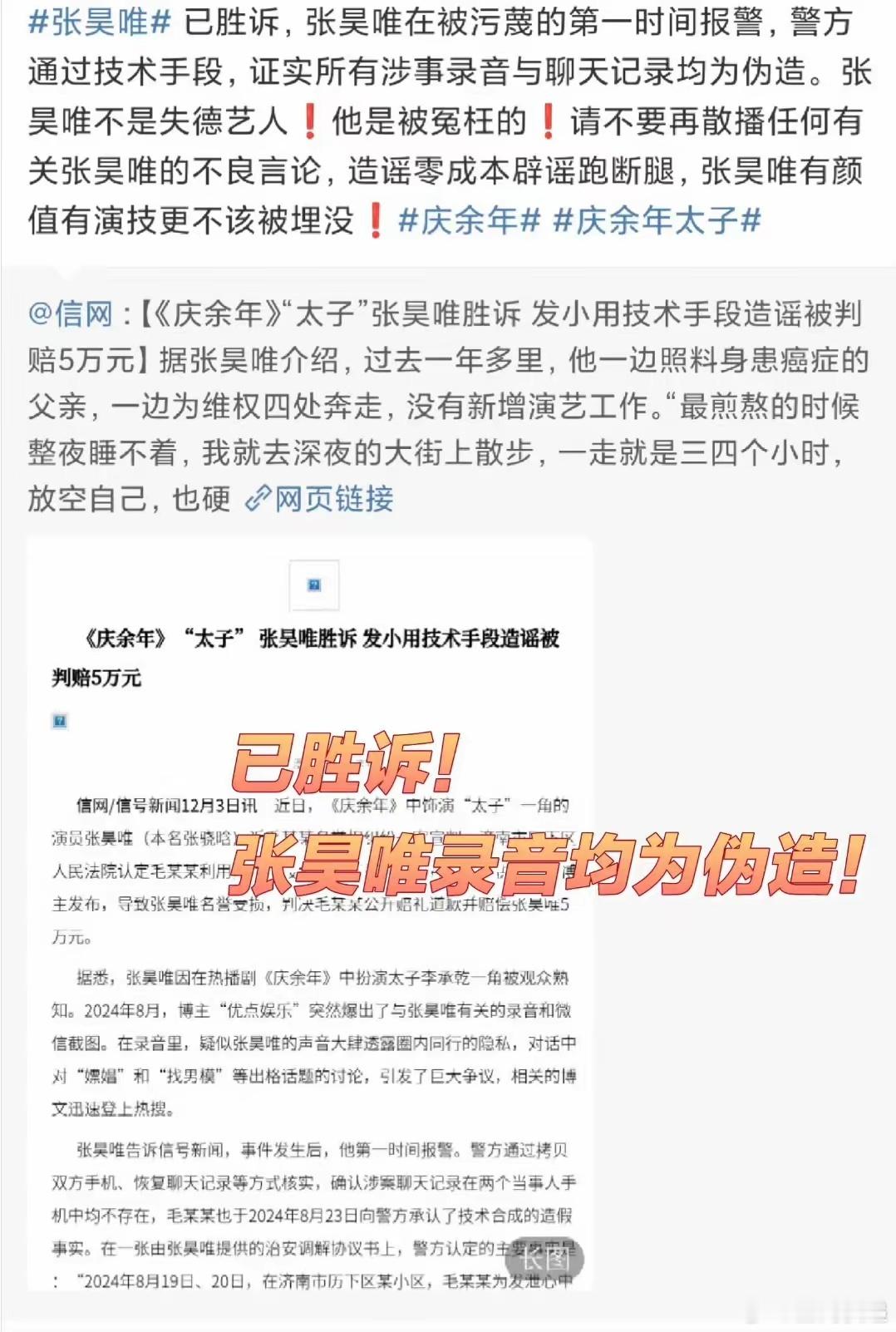 张昊唯此身分明了张昊唯这波真的被所谓“朋友”坑到家了!毛某某为了经济纠纷,居然用AI合成假录音假图片,还主动递料给营销号扩散,直接毁了人家事业。一审就赔5万+公开道歉?这造谣成本也太低了吧!还好名誉权案胜诉自证清白,庆余年3总算不用换人了,但他丢的那些工作谁来补啊?真的要警惕身边人,嫉妒心才是最可怕的刀张昊 张昊唯此身分明了