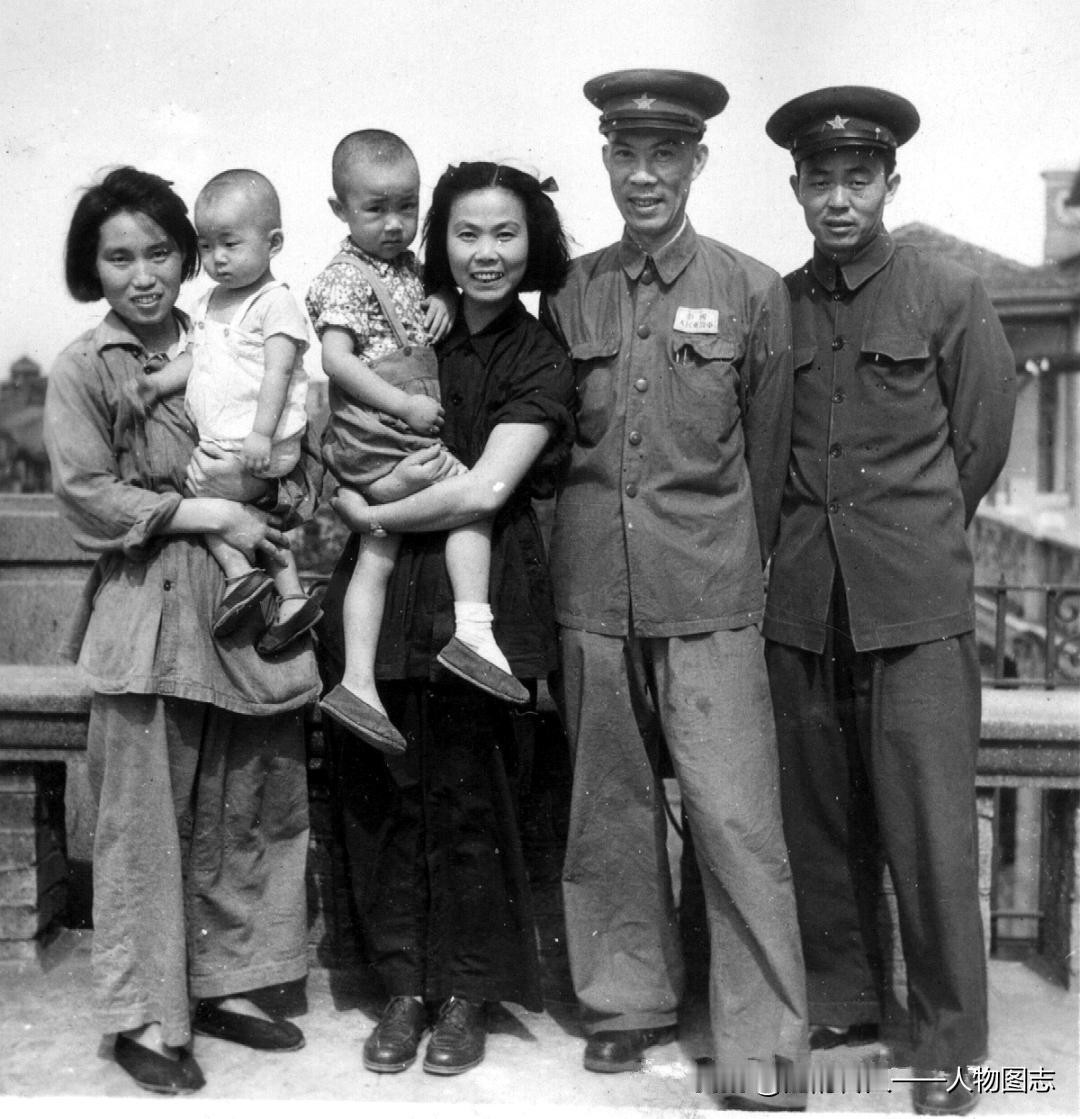 1950年周士第从四川调京,路过汉口时与家人合影。左起:周士第夫人张剑、周士第女儿周博雅、周士第、周士第女婿彭富九。孩子左起:周士第次子周强、长子周坚。