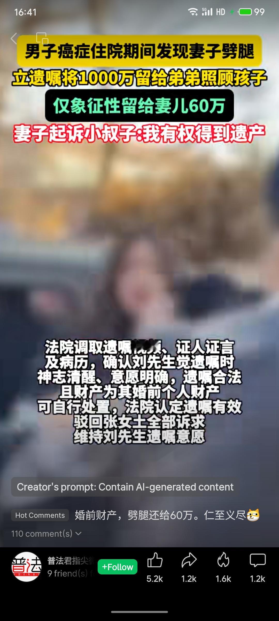 男子患癌住院期间发现妻子出轨,遂立遗嘱将其千万婚前个人财产主要留给弟弟以照顾孩子,仅象征性给予妻儿60万。妻子起诉要求分得遗产,法院经审理确认其立遗嘱时神志清醒,财产属个人所有可自主处分,故判决遗嘱有效,驳回妻子诉求。