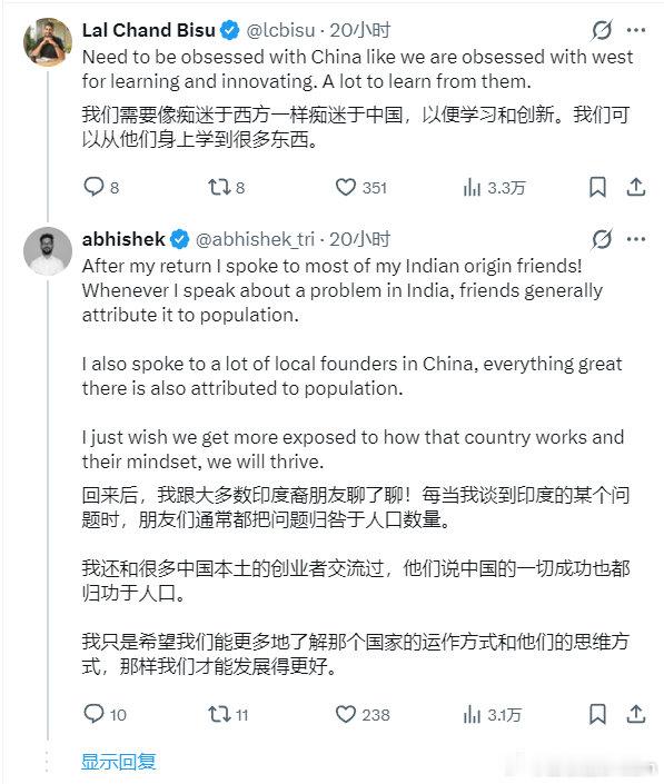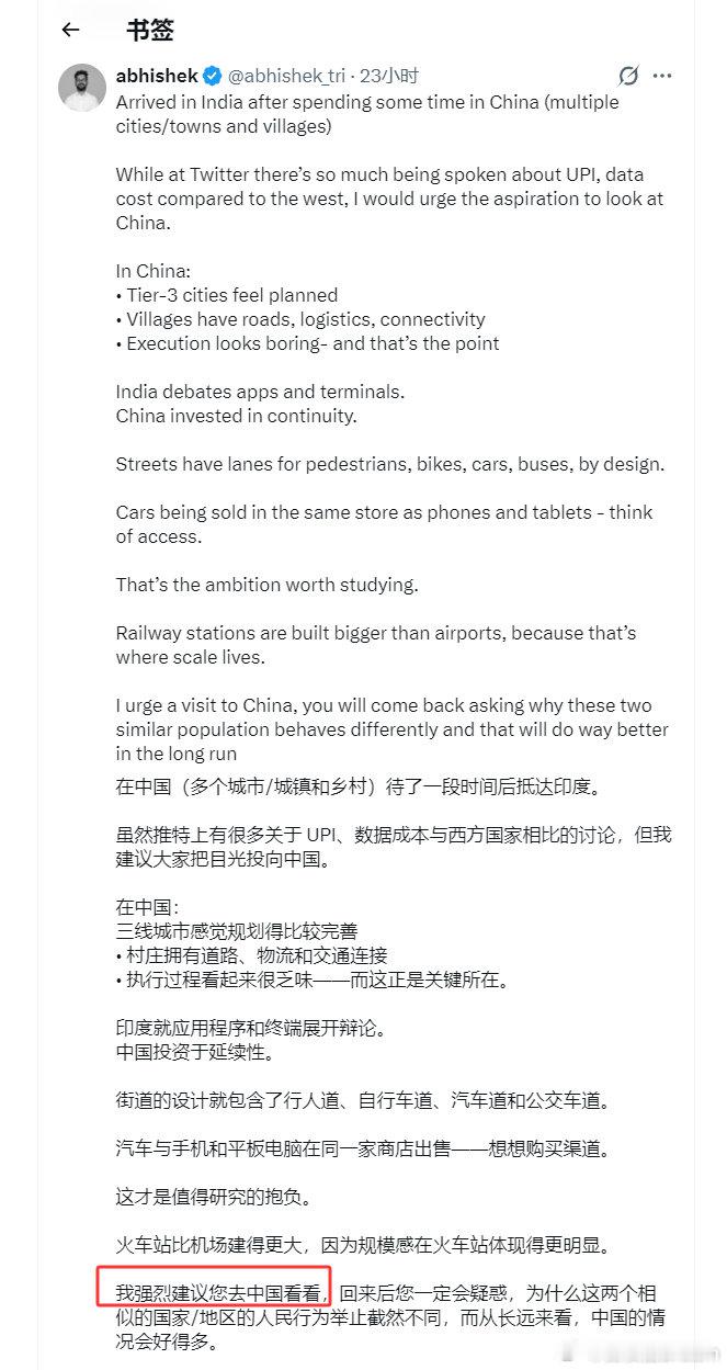 🔻印度公知反思中国发展。他说中国比印度更发达的,强烈建议网友去中国看看。🔻印度人:每个去过中国的朋友都说过同样的话。印度人必须去中国才能真正了解什么是发展。海外新鲜事热点现场