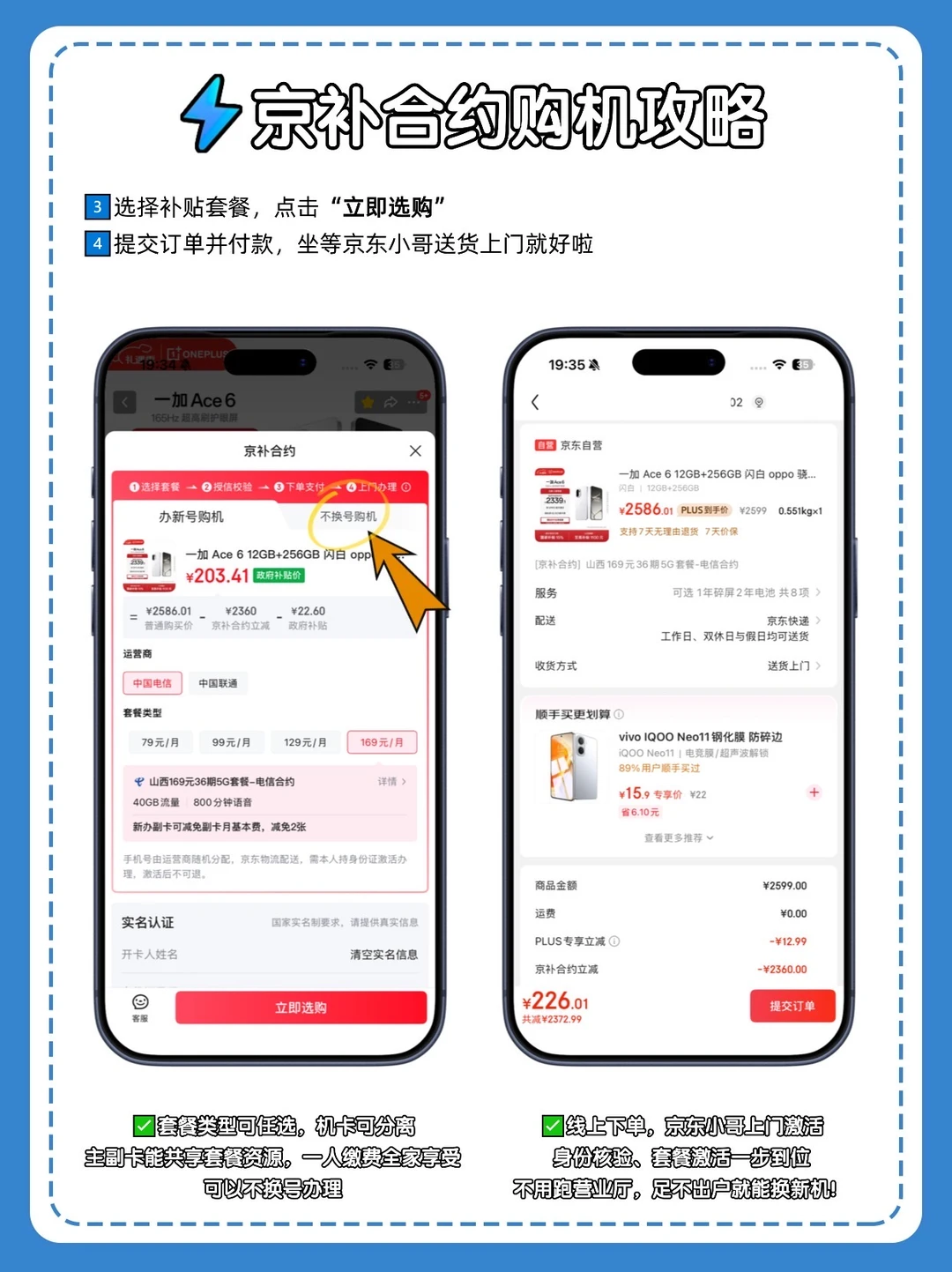 线上办理超便捷,京东小哥上门激活,无需跑营业厅,下单后快递员直接上门完成身份核验和套餐激活,足不出户轻松换新机