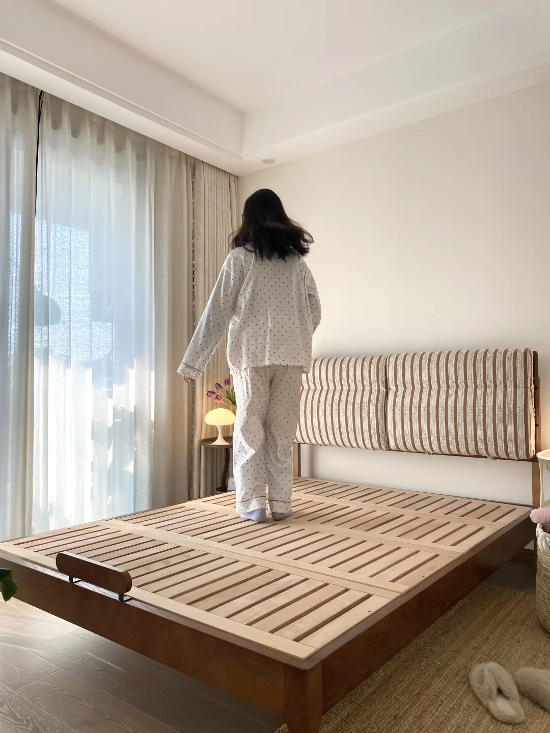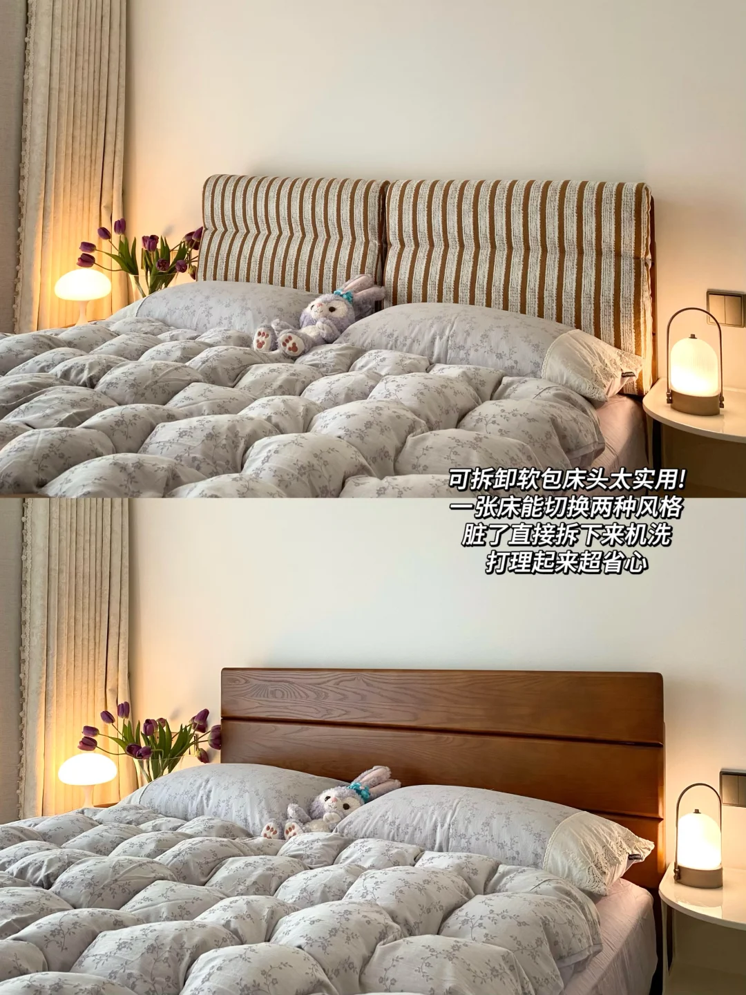Hi~姐妹们!我是咩咩,小卧室只有9㎡👋 空间不大,所以想把每一个角落都利用好!🛏️在选床方面我也是考虑了很多! 今天就来分享我家氛围感和幸福感的灵魂所在——这张大司马双枕实木床吧!😘 当初也是做了超多功课才入手的,现在睡了有一段时间了,只能说:我的眼光也太好啦! ✨颜值与实力并存,懒人狂喜! 它的靠背是那种软乎乎的高密度海绵,靠着刷手机、看书,简直像陷进了云朵里☁️,幸福感爆棚! 而且还是可拆洗的!🙊 对于我这种有点小洁癖的懒人来说,简直是救星! 弄脏了直接拆下来一洗,瞬间焕然一新,打理起来毫无压力! 而且拆掉软包又是另一种简约实木风,相当于一张床拥有两种风格,四舍五入等于没花钱又换了张新床! 🌿小户型的空间魔术手! 卧室只有9平米,放下这张1.5米的床以后,左右和床尾都很空!秘诀就在于它的齐边设计! 一点不浪费过道空间,床尾还能完美放下我的梳妆台和斗柜,动线超流畅!✌️ 床脚离地15cm,我家的扫地机器人可以自由进出,再也不用手动弯腰去扫床底了 💪稳如泰山,翻身“静”悄悄! 这张床的“内在”也超有料!FAS级白蜡木的框架,配上加厚的榉木排骨架,肉眼可见的扎实! 我这种睡觉不老实、喜欢翻来覆去的人,睡后亲测,床架稳得一批,完全没有吱呀的异响,一觉睡到天亮! 它还贴心地贴了静音贴,细节满分!对于浅眠星人来说,这简直是安全感和睡眠质量的双重保障!👍 不得不说,选对床真的太幸福啦。这张大司马超薄实木床,好看、省空间、睡得又舒服,复古氛围感直接拉满! 想打造同款卧室的宝子们,可以直接抄作业哦